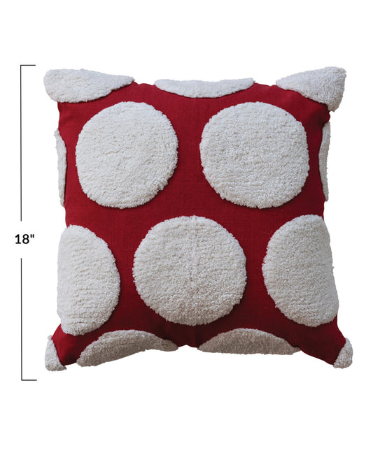 Cotton Slub Pillow w/ Tufted Dots, Red & White