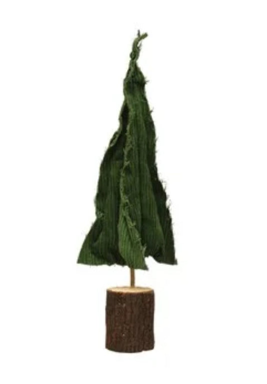 Raw-Edged Corduroy Tree w/ Wood Slice Base