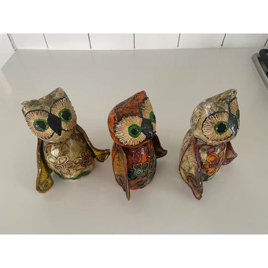 Vintage Paper Mache Owls Set of Three