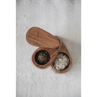 Acacia Wood 2-Tier Salt & Pepper Dish with Lid