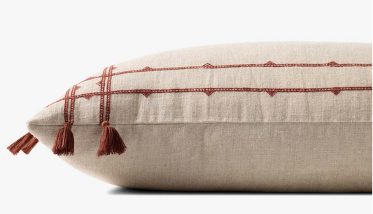 Natural & Rust Linen Tassel Lumbar Pillow