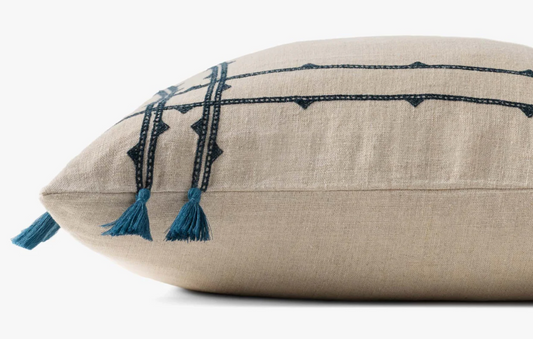 Natural & Blue Linen Tassel Pillow