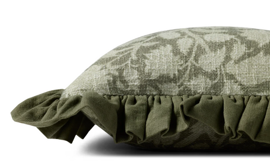 Floral Green Ruffle Pillow