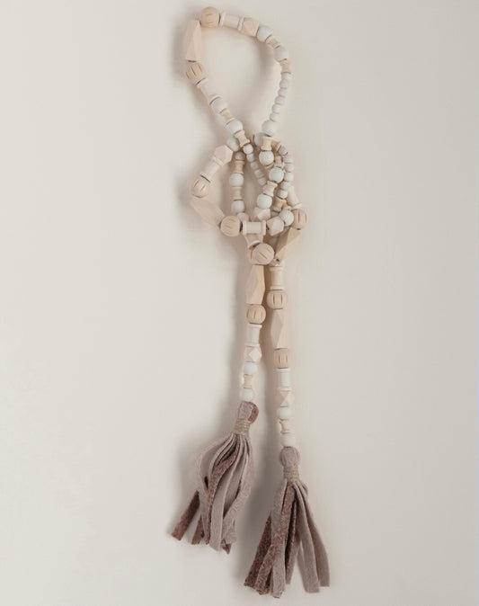 72"L Paulownia Wood Bead Garland with Fabric Tassels