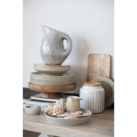 Stoneware Canister With Debossed lines