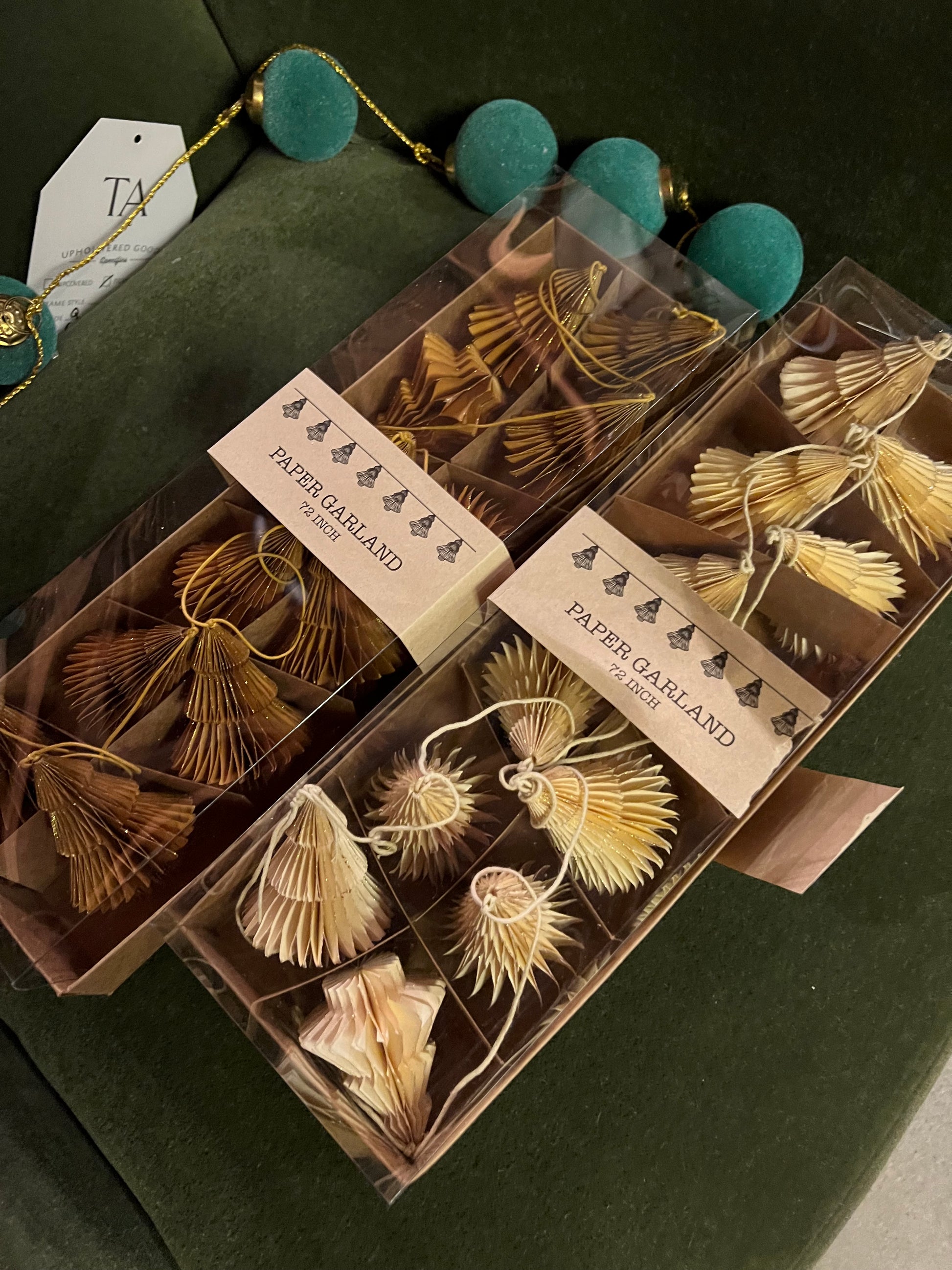 72" Handmade recycled Paper Honeycomb Tree Garland with Gold Glitter
