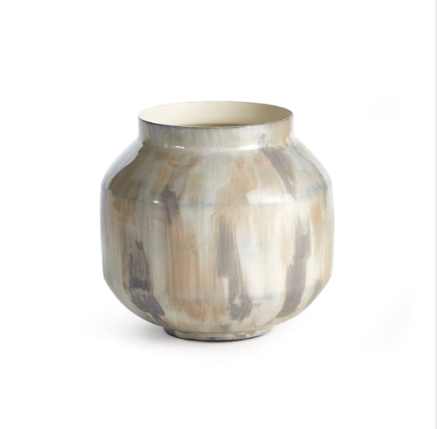 In a clever use of enameled iron, this lightweight beauty is painted by hand. Each one prettier than the next, creating a neutral, creamy tone-on-tone design. A beautiful addition to the contemporary space.