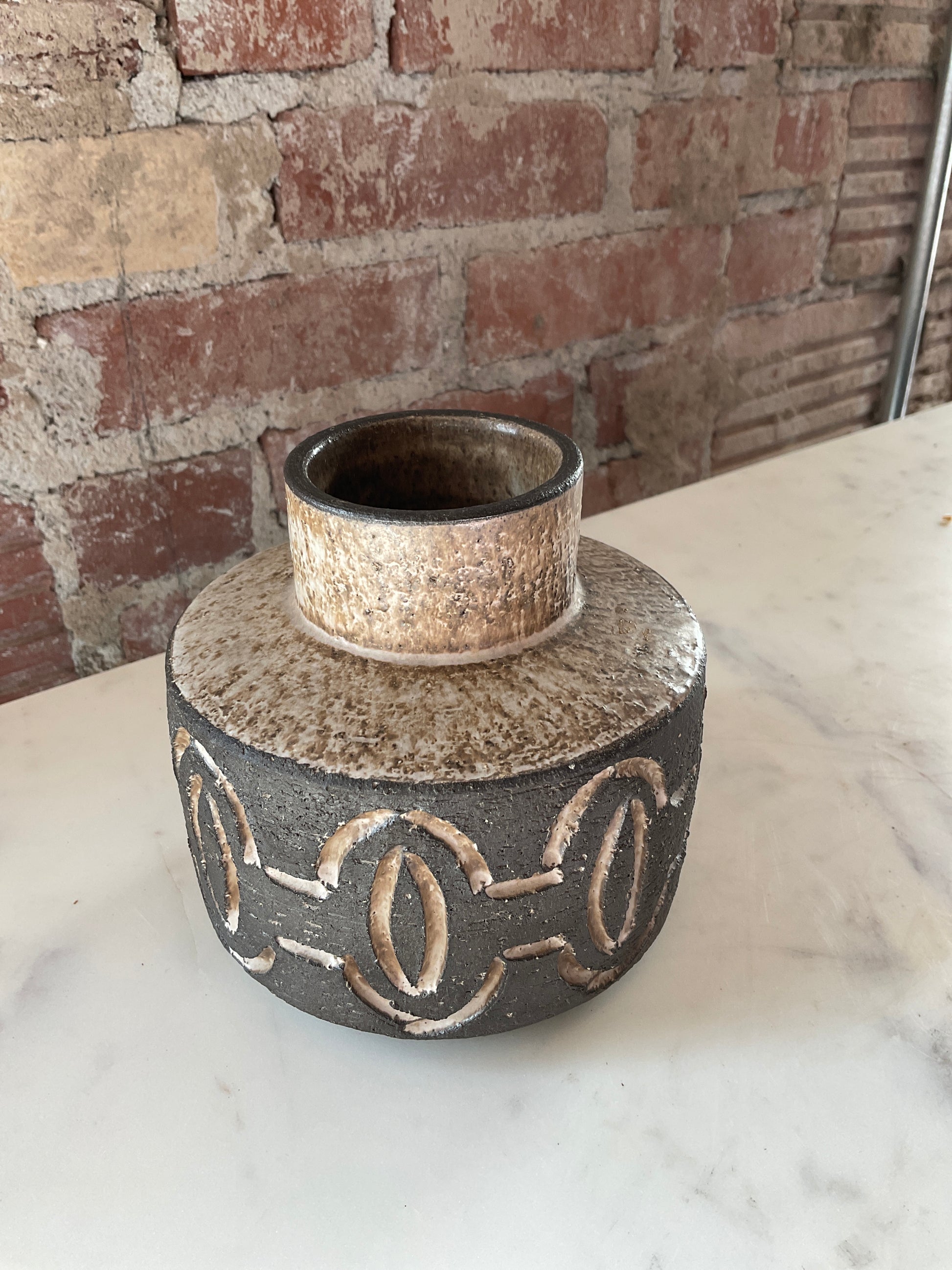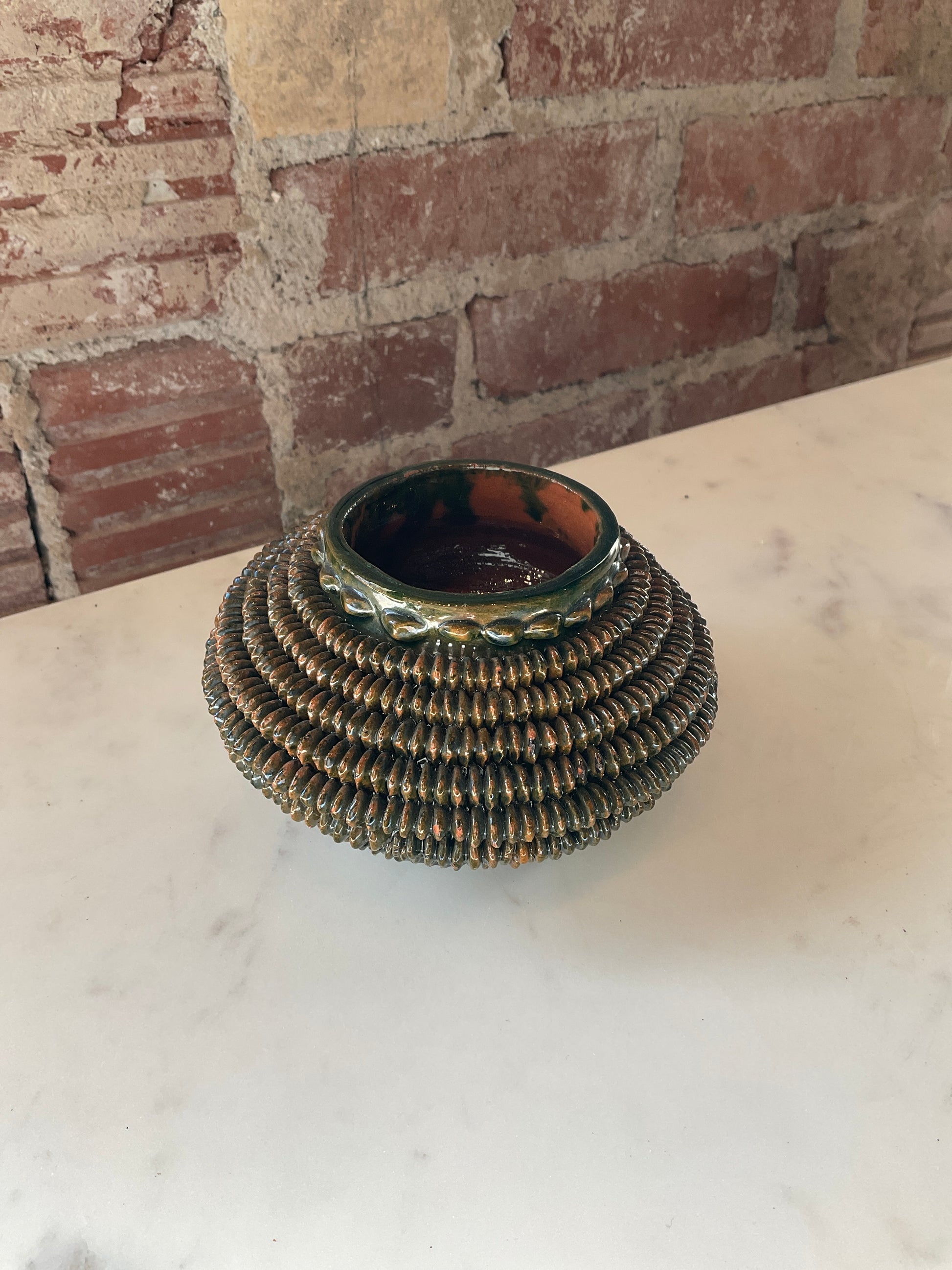 Gathered collection of mid century pottery pieces.