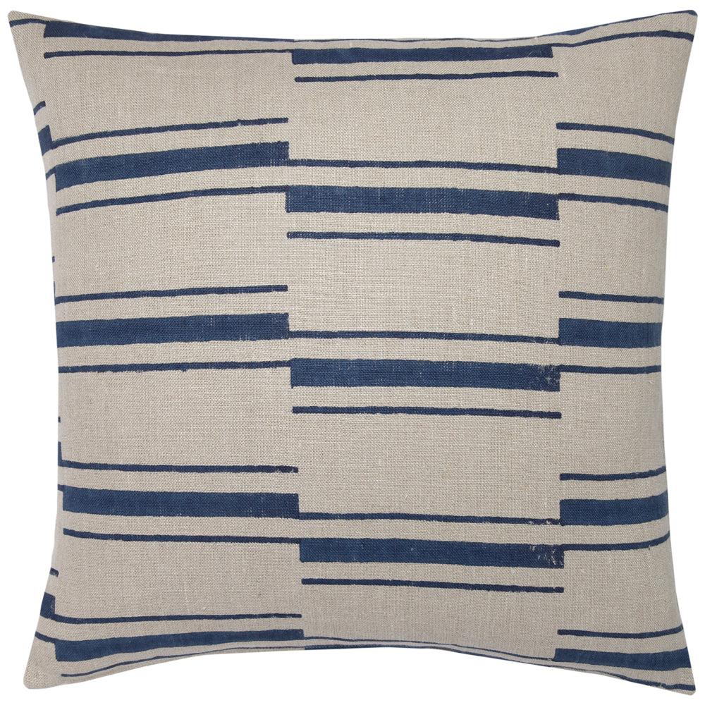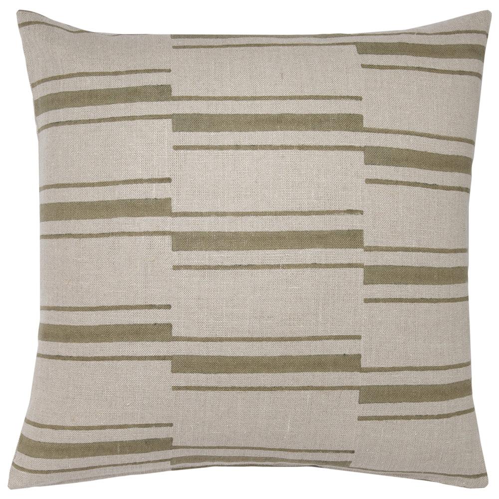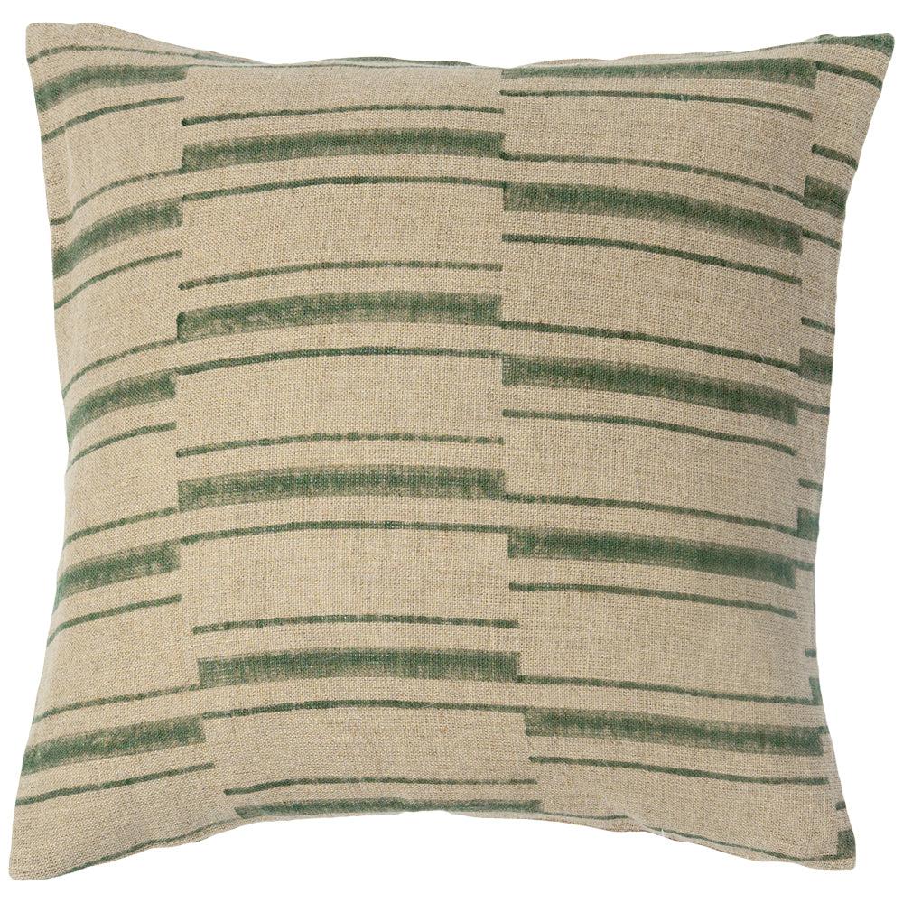Beautifully hand block-printed pillow on linen fabric. Featuring an offset striped pattern in the color Pistachio.