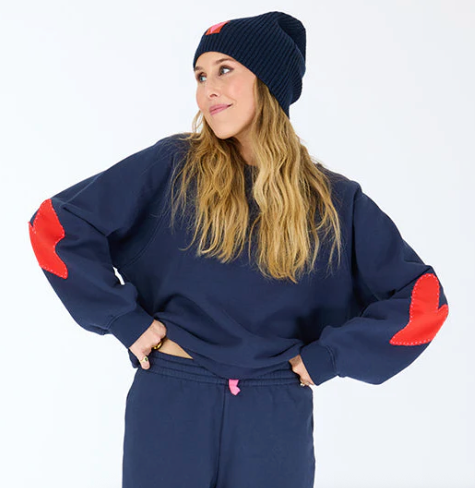 Kerri's Benton Imperfect Heart Patch Sweatshirt is crafted from our softest cotton fleece, offering a loose, comfortable fit. Contrast heart elbows and raglan sleeves, adds a bit of fun to your everyday sweat set look. Pairs back to the Weekend Barb Sweatpant and just about anything else.