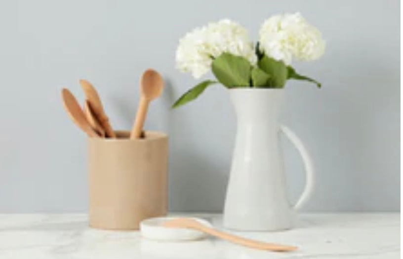 The Bria Hammel Utensil Holder is designed to live on the counter for organization and ease in the kitchen. This versatile vessel will complement any aesthetic - perfect for storing utensils and tools, this crock can also be used as a chic planter or vase throughout the home.