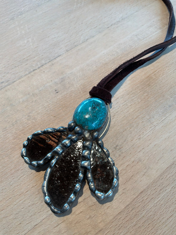 Brown Pottery Necklace with Turquoise on Brown Leather