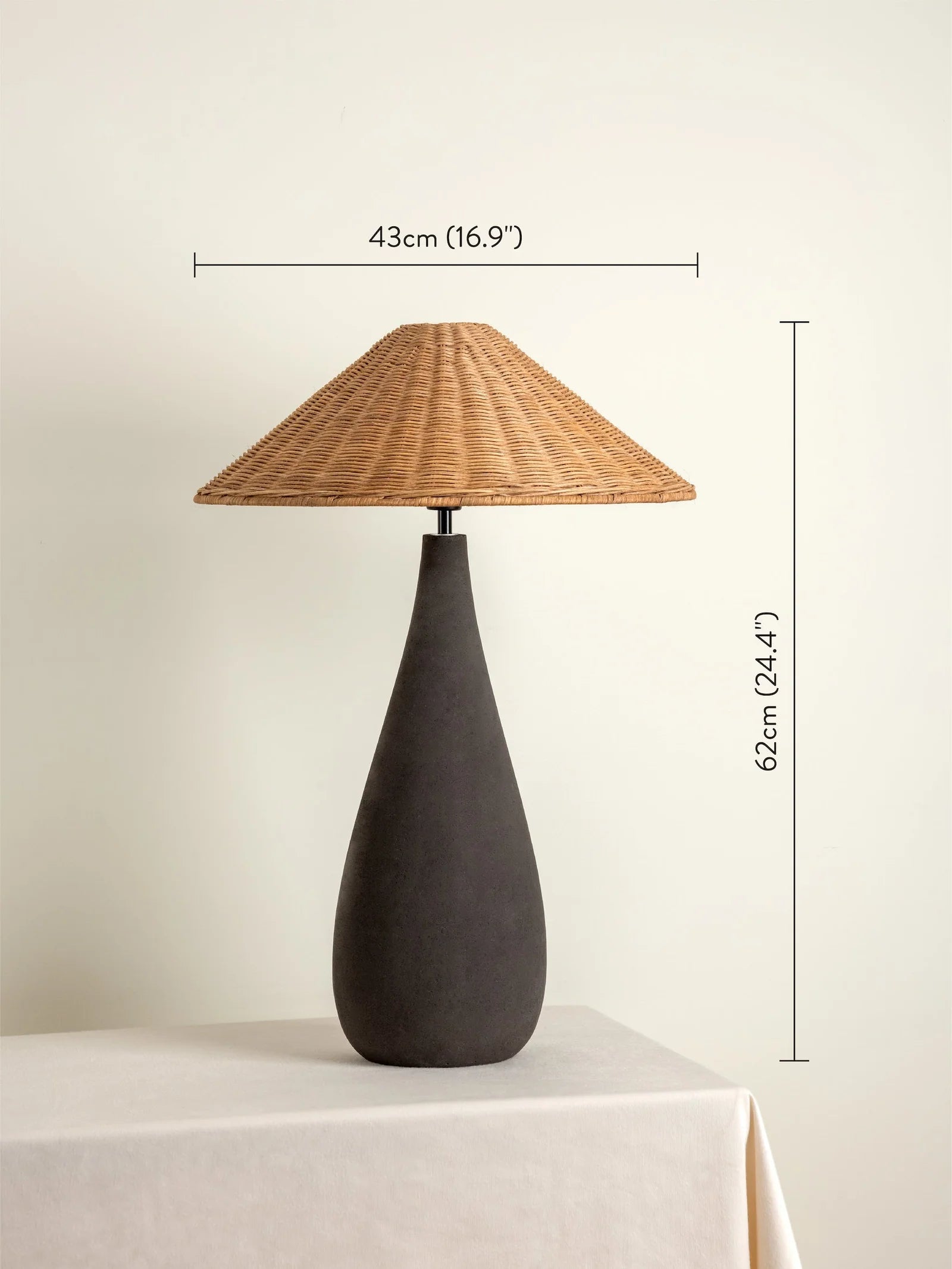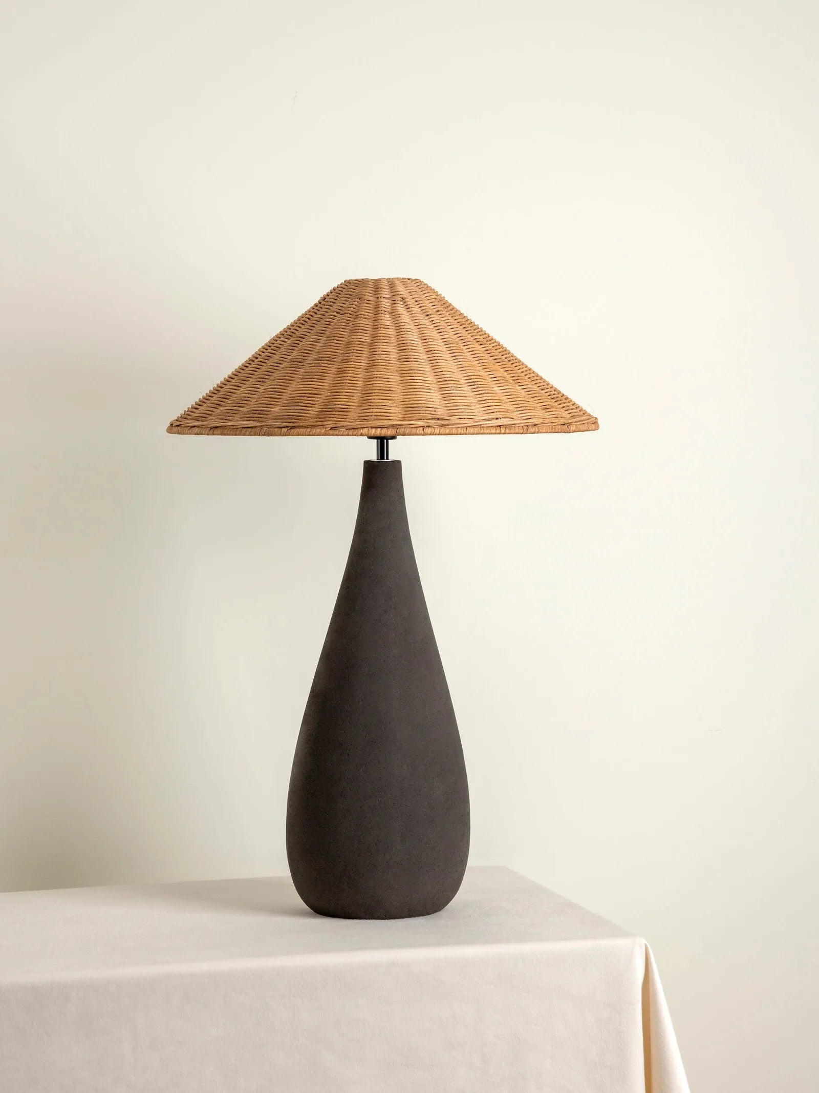 The charcoal concrete and rattan table lamp is a statement addition to our natural collection. This tall and versatile statement piece is perfect for any room in your home. The wide rattan cone shade casts a warm and inviting glow, while the charcoal concrete base provides a sturdy and stylish foundation. Artisan-crafted with care and attention to detail, this lamp is sure to become a cherished part of your interior design.