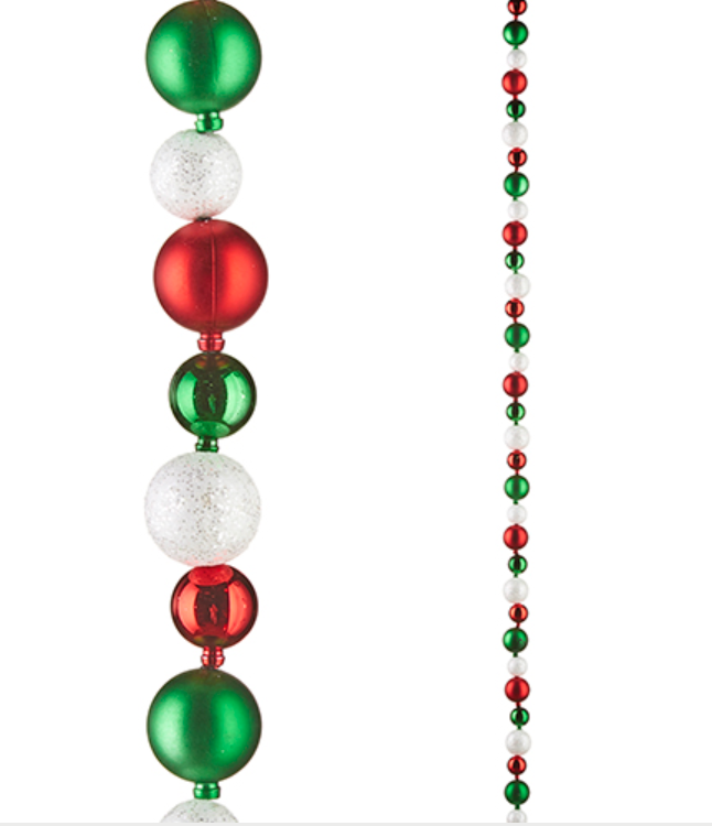 6' RED, GREEN, AND WHITE BALL GARLAND