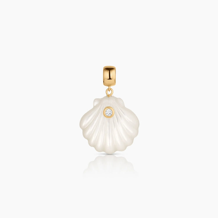 Your search for the perfect shell ends here. Meet Coquille — a gemstone scallop shell charm with hand-carved detailing to make your ordinary days feel extraordinary. Designed with our versatile bail attachment, slide it on your favorite chains and chokers to create endless looks.