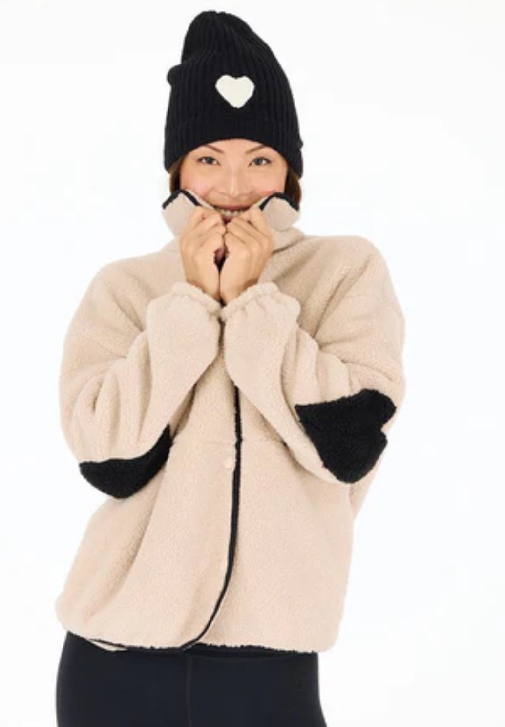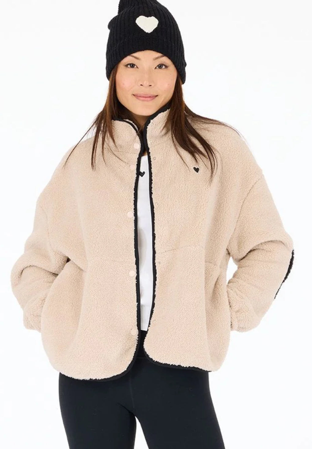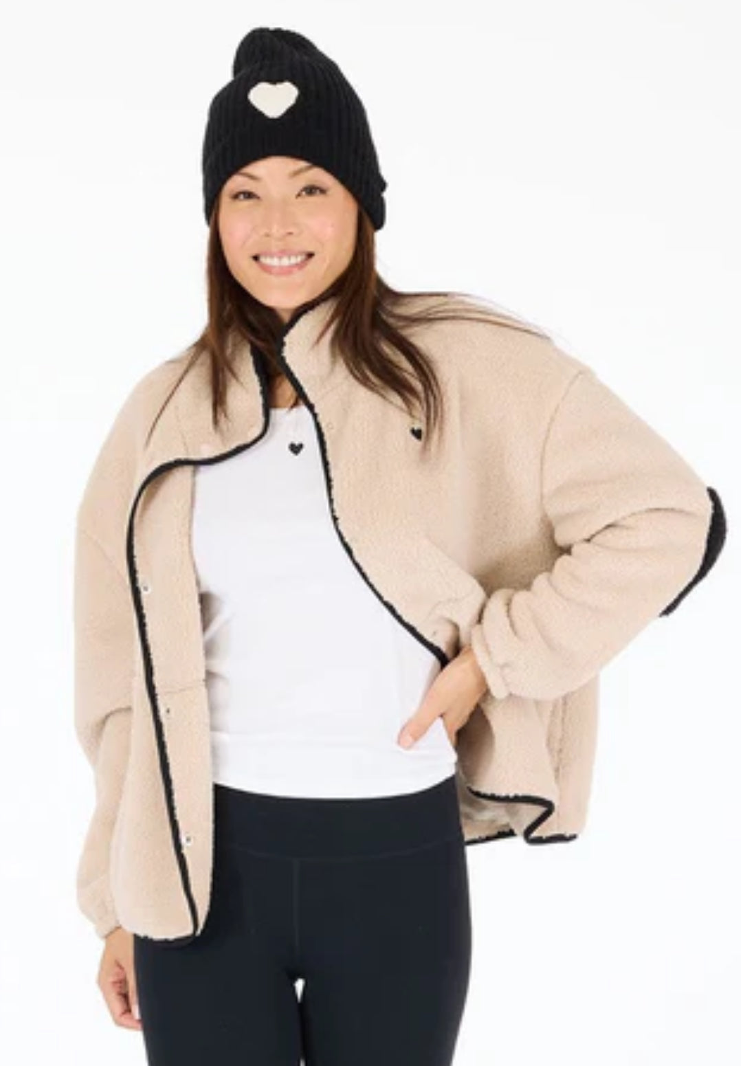 Meet the Coze Magoze! Our first-ever fleece teddy jacket is as cozy as it looks! Imperfect heart elbow patches make this super special.