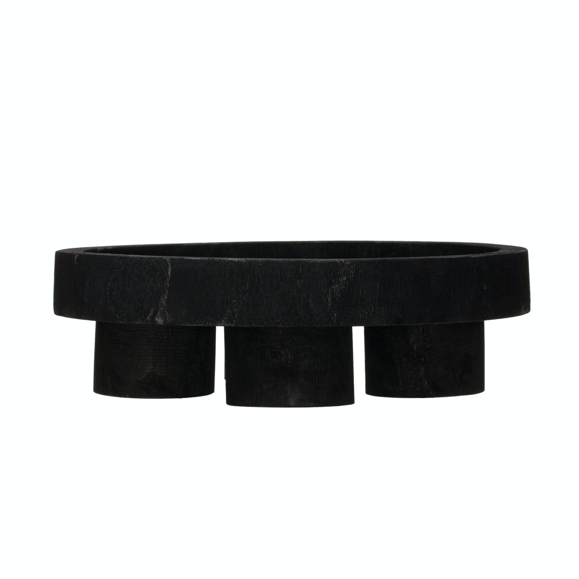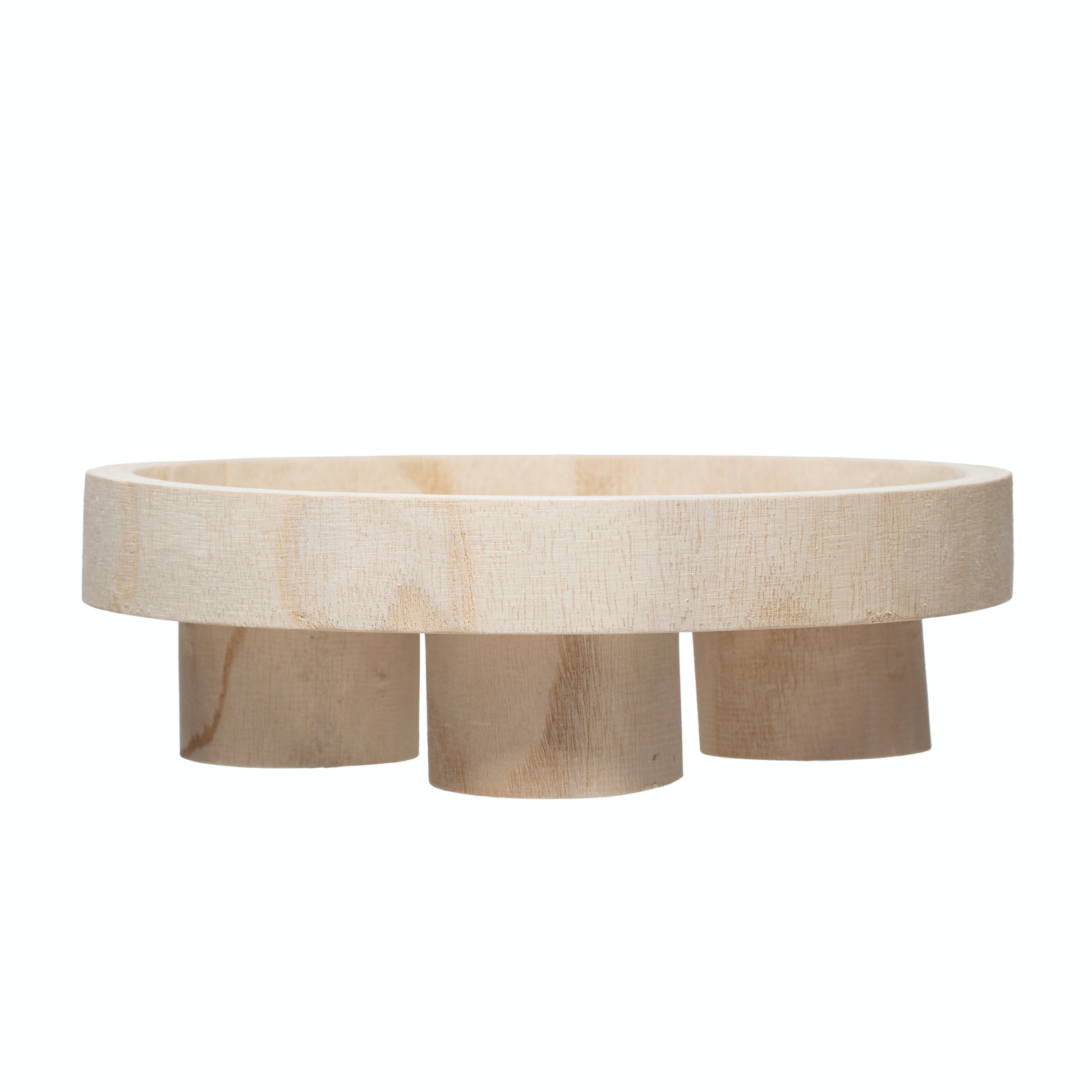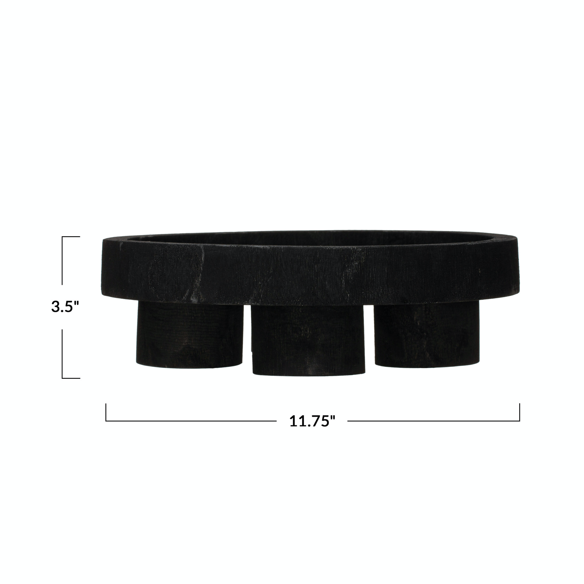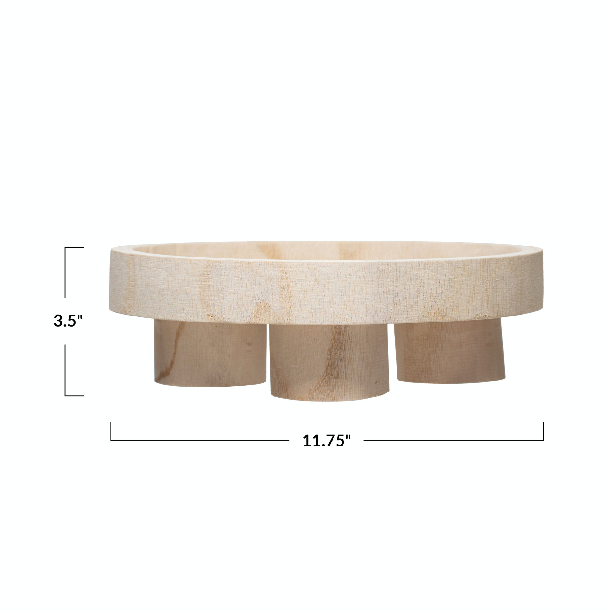 11-3/4" Round x 3-1/2"H Decorative Paulownia Wood Footed Tray