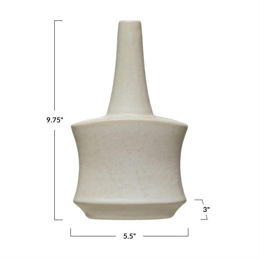 Decorative Stoneware Vase, Reactive Glaze, Matte White (Each One Will Vary)