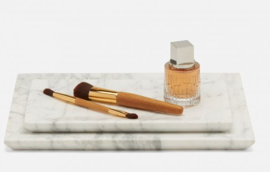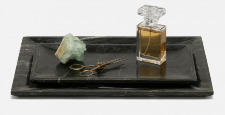 Our Elyria nested trays - in polished squares of black or white Italian marble - are simply luxurious on a vanity or bathroom shelf.