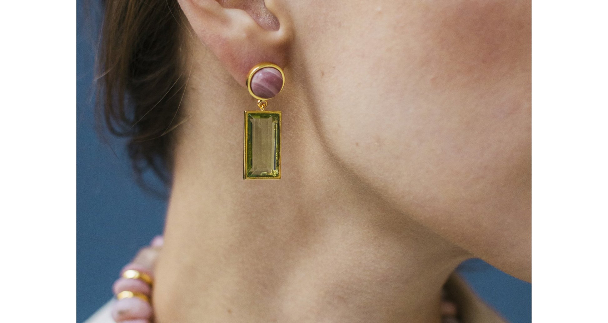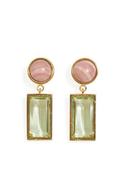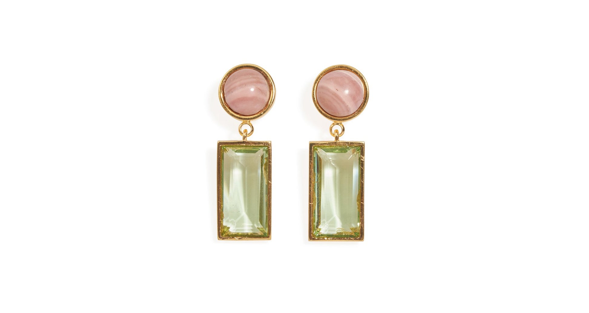 Pastels for Fall? Groundbreaking (but for real). We love the pretty soft palette of our gold-plated column earrings, with pink opal stone tops and hanging carved amethyst quartz baguettes.