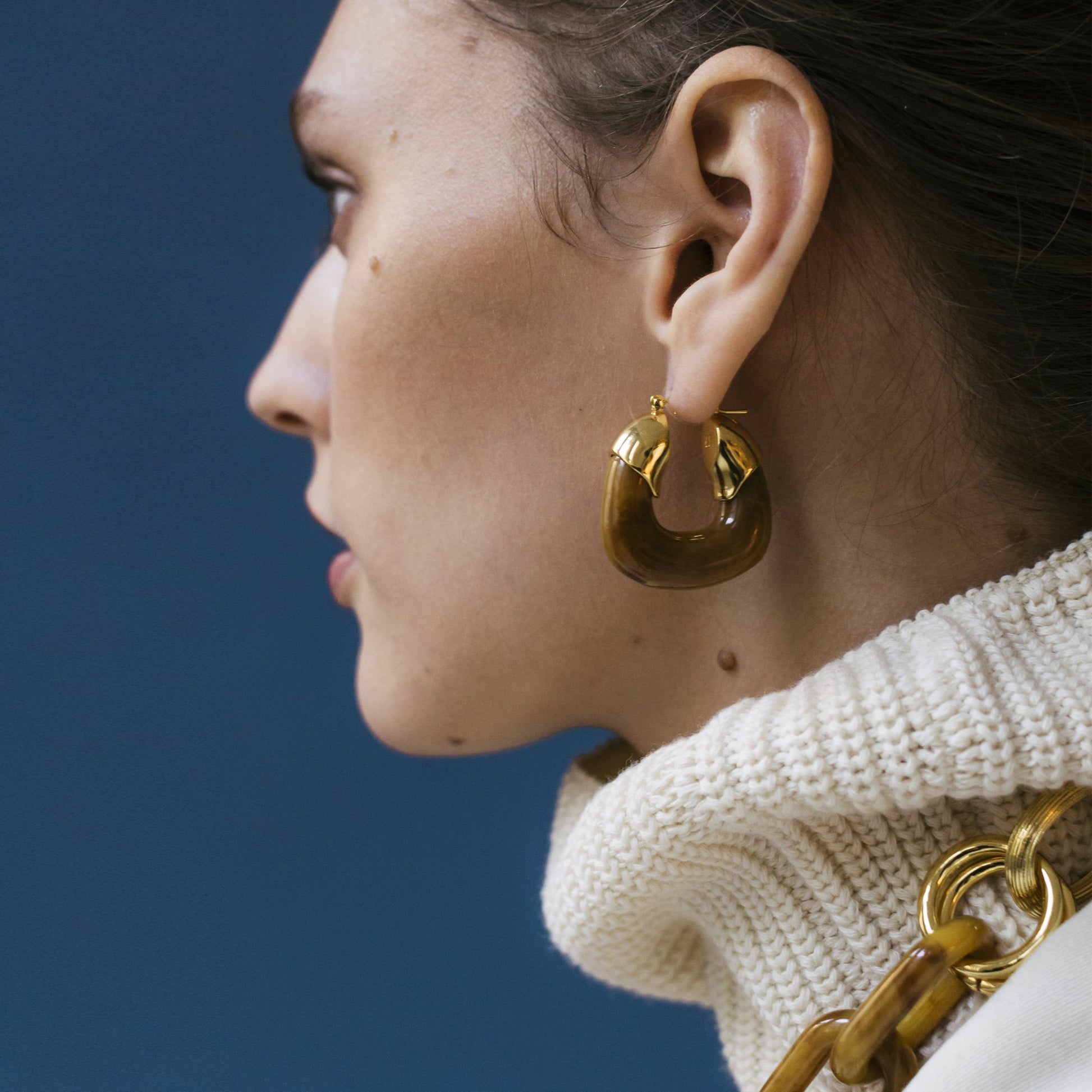 - Gold-plated brass or rhodium-plated brass, acrylic