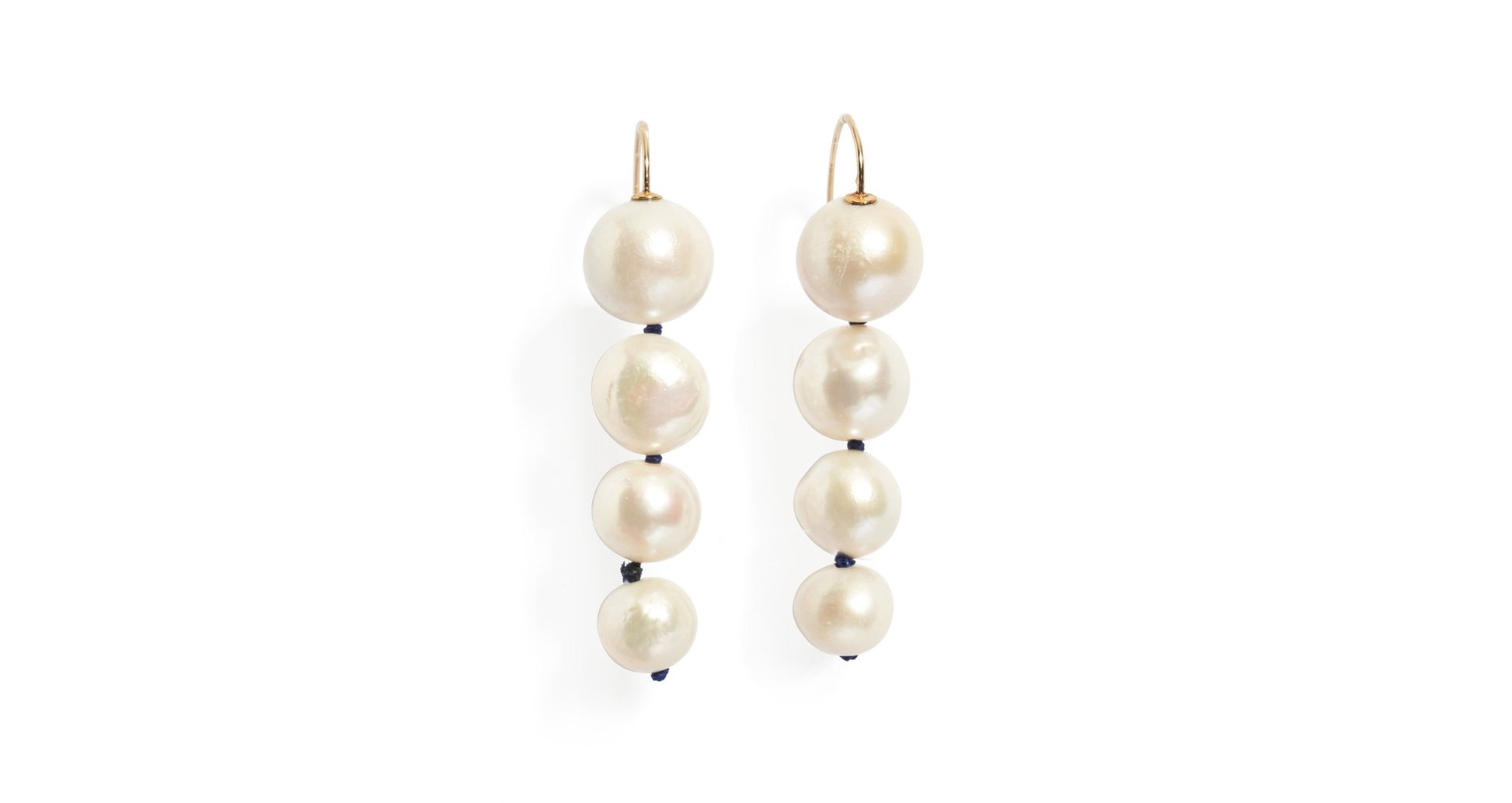 We adore the throw-on-and-go elegance of these gold-fill wire earrings knotted with cord and hanging freshwater pearls. Prepare to wear them with blue jeans and ball gowns alike!
