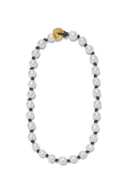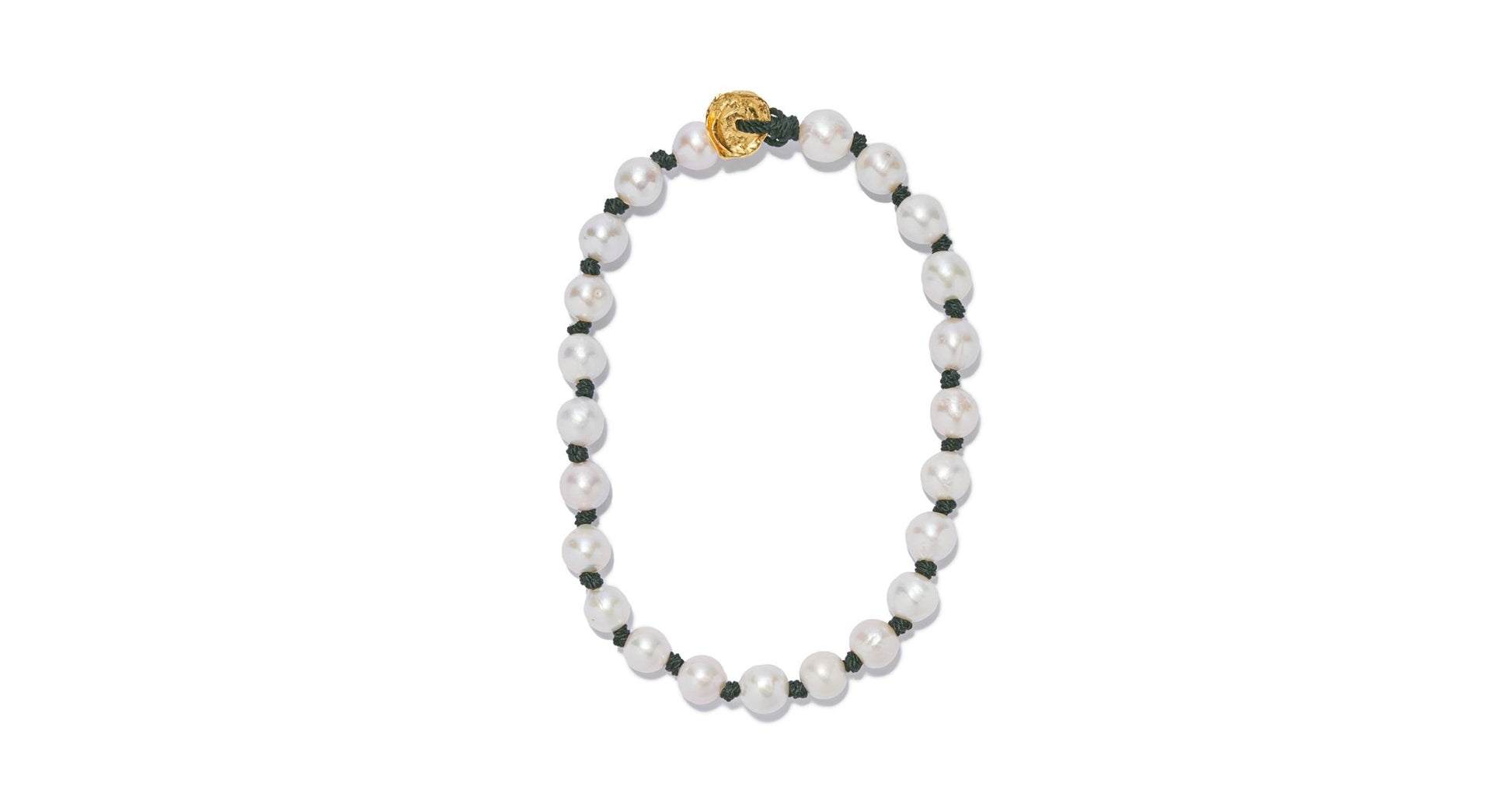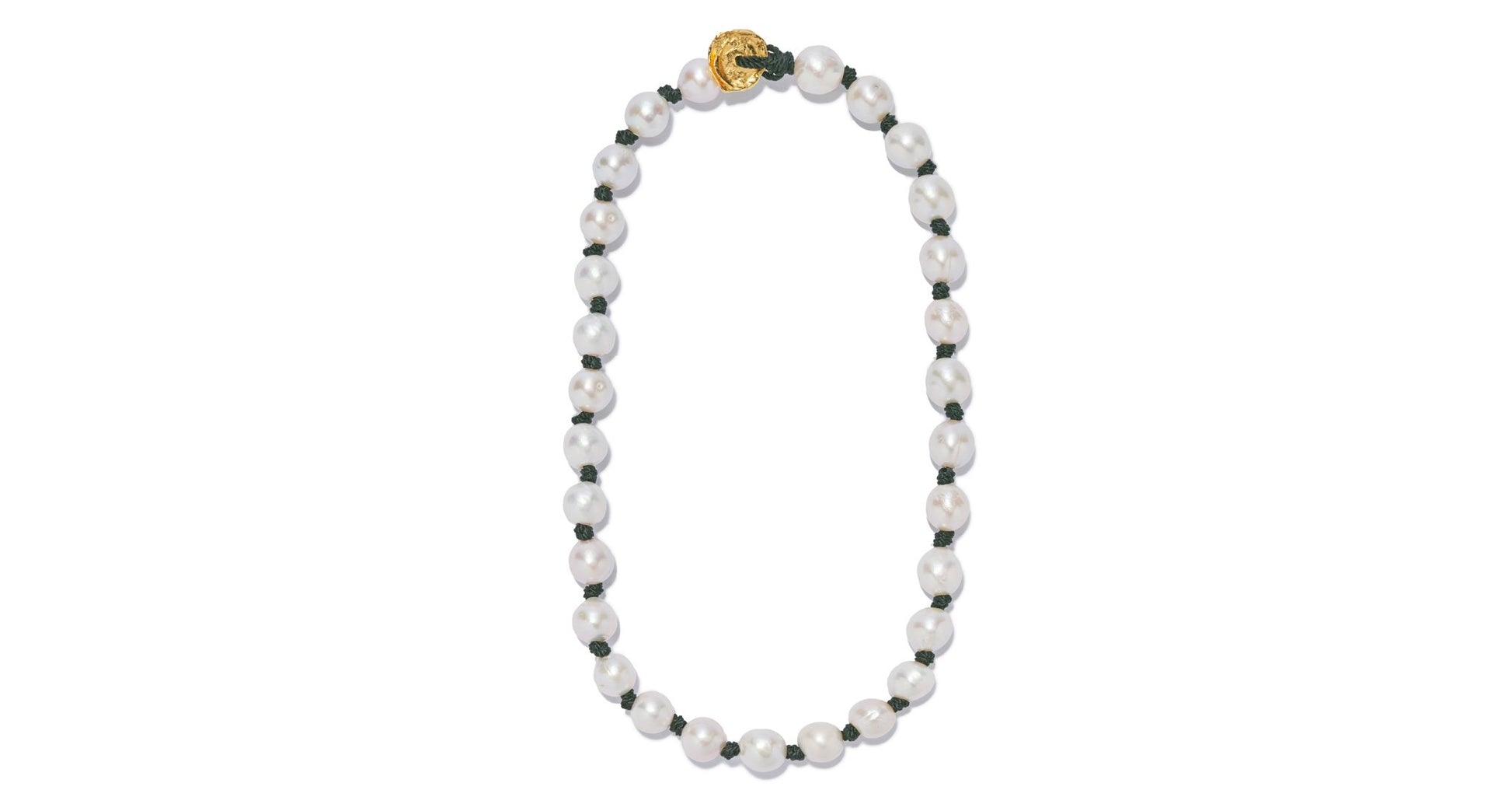 The world is your oyster in this elegant, versatile freshwater pearl and hand-knotted black cord necklace. With gold-plated "flake" toggle closure.