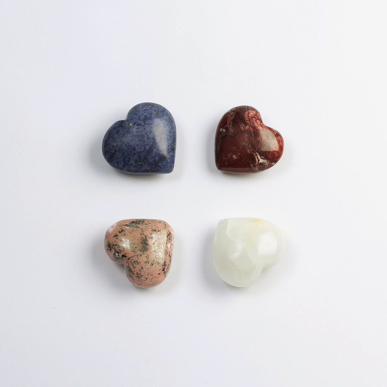 These colorful, decorative gemstone paperweights have been crafted with you in mind. Get to spread some love in your interior space by adding the tactile energy of these remarkable Andean gemstones. A playful element to a busy desk, vanity or table setting. Pieces are exclusively carved from gemstones, and come in a variety of colors - blue Sodalita, pink Rhodonita, red Jasper to name a few. Assortment includes a mix of 3 or 4 colors, similar to images, but will vary. Dimensions are approx 2" x 2" x 1"