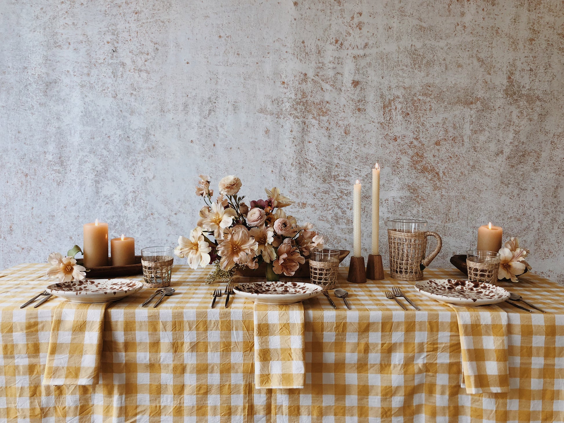 These napkin sets feature our signature Gingham pattern in sunflower yellow.
