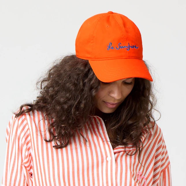 The KR Le Sunshine baseball hat is a soft-but-structured, cotton cap in aperol orange. This hat is one to collect.