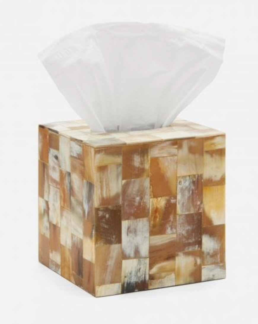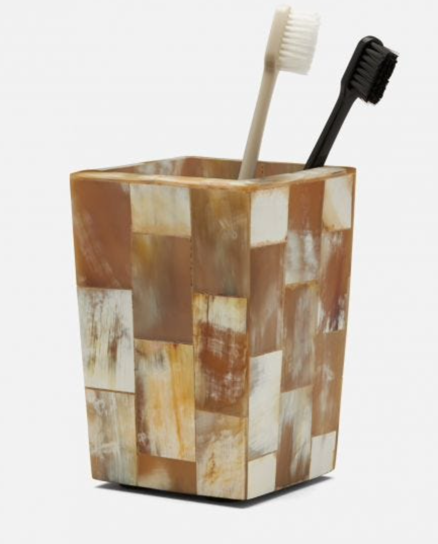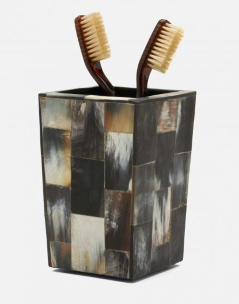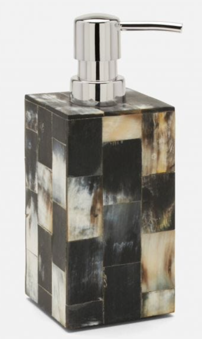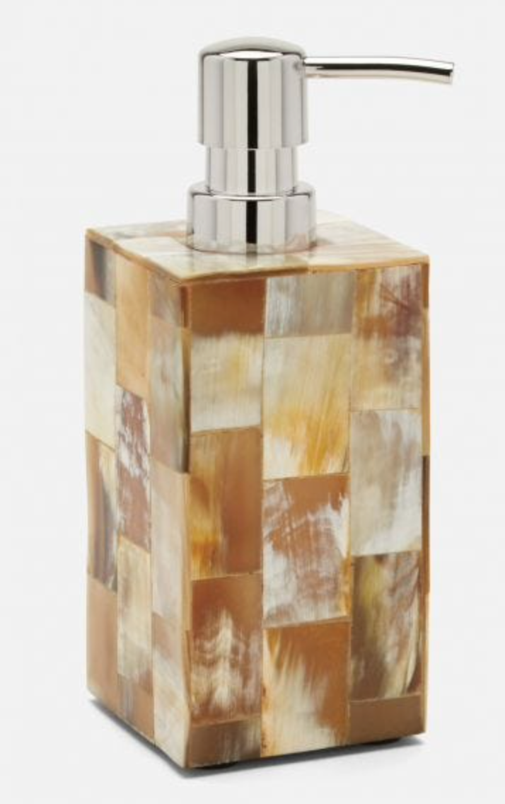 Our Lark bath collection is a showstopper in dazzling, multicolored horn tiles, laid by hand for an artful effect.