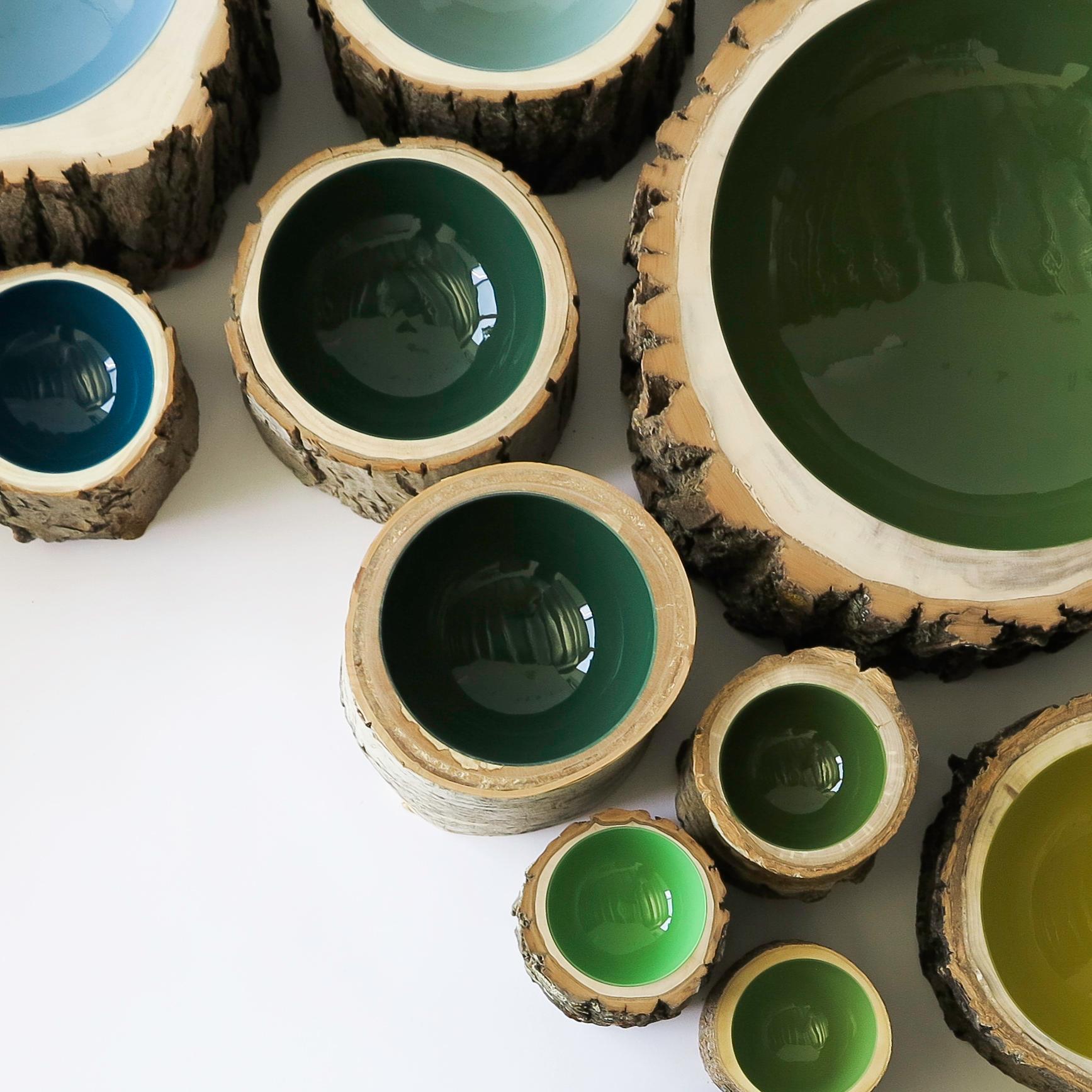 Log Bowls combine the beauty of a tree in its natural state with a high gloss, vibrant finish. Each bowl is handmade to order using locally reclaimed trees of all varieties (fallen or cut down due to infrastructure or inclement weather). The trees are selected, gathered, turned and finished by Loyal Loot and local artisans.