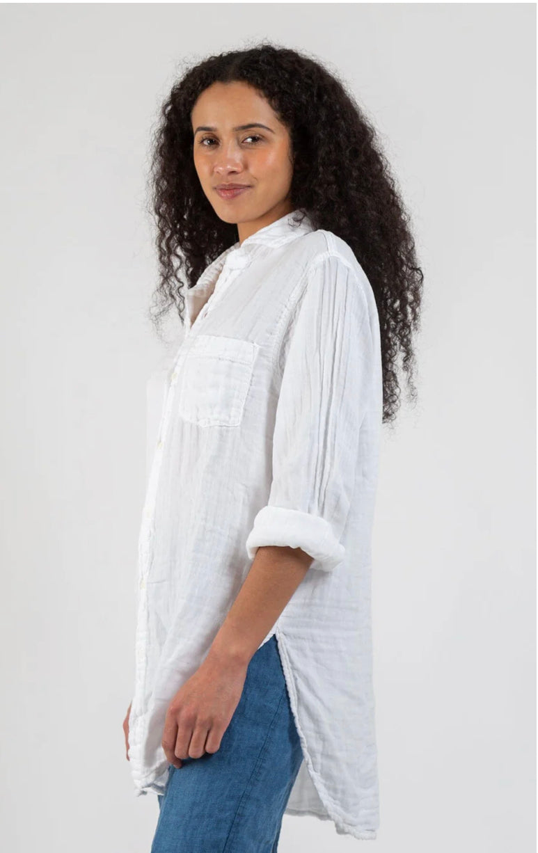 100% Cotton, pre-washed, pre-shrunk. White shirt double cotton