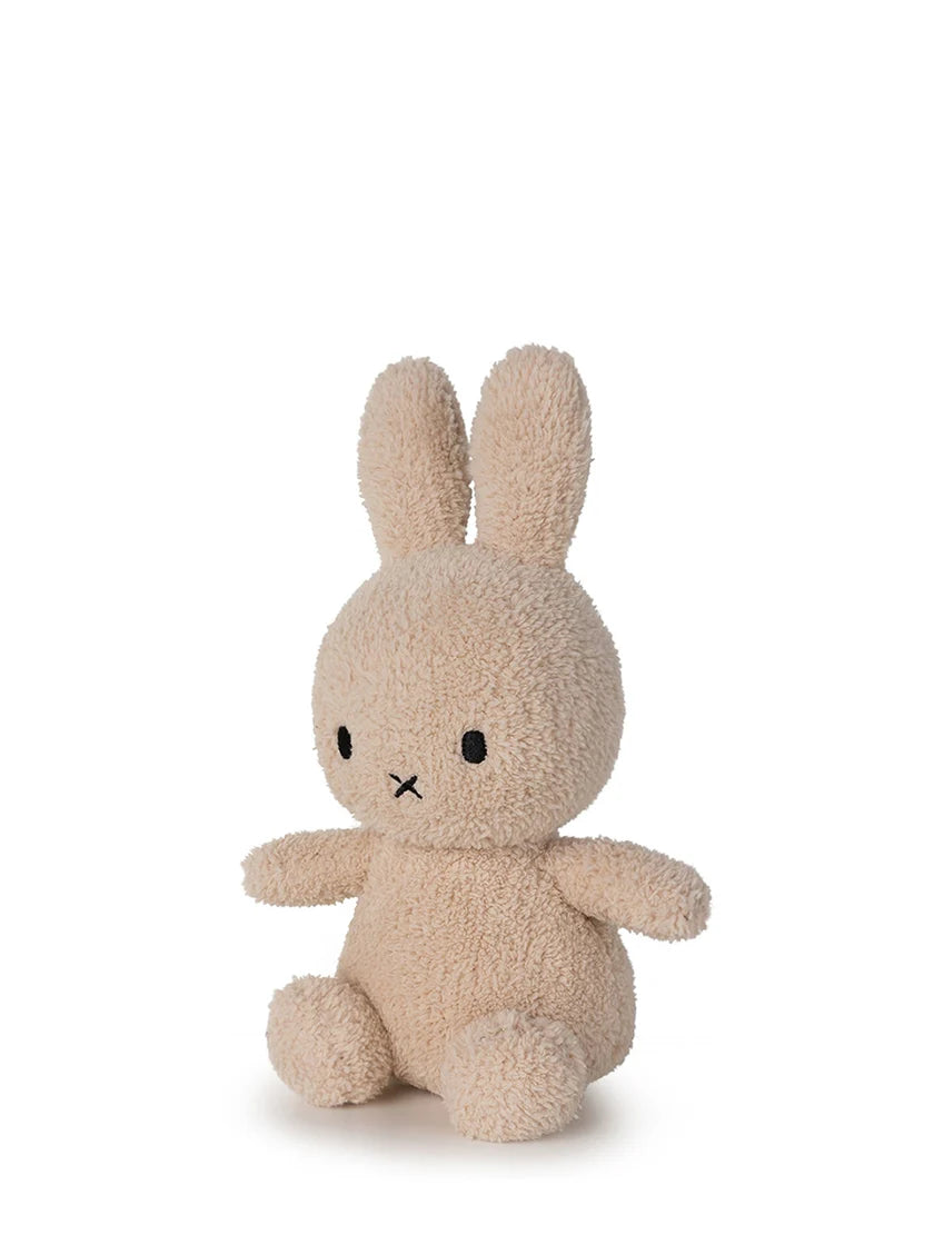 The items of the Miffy Terry Collection are truly the softest Miffy's ever made. The fabric feels like a luxury towel-y terry and has a flexible stuffing which makes them the best cuddle partners, even for the tiniest babies. They're the ultimate baby gift and perfect for a babyshower! Your Terry Miffy is handcrafted. You can wash her, but we don't recommend using a machine. Hand wash only. Miffy's filling is made of 100% recycled polyester and our suppliers are carefully selected and all meet the “ethical supply chain” (ICTI) status.