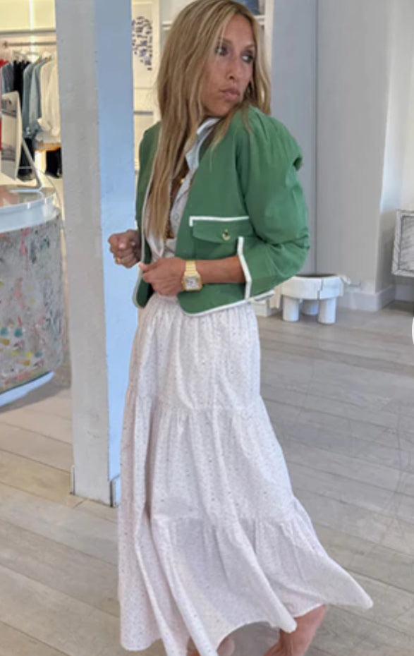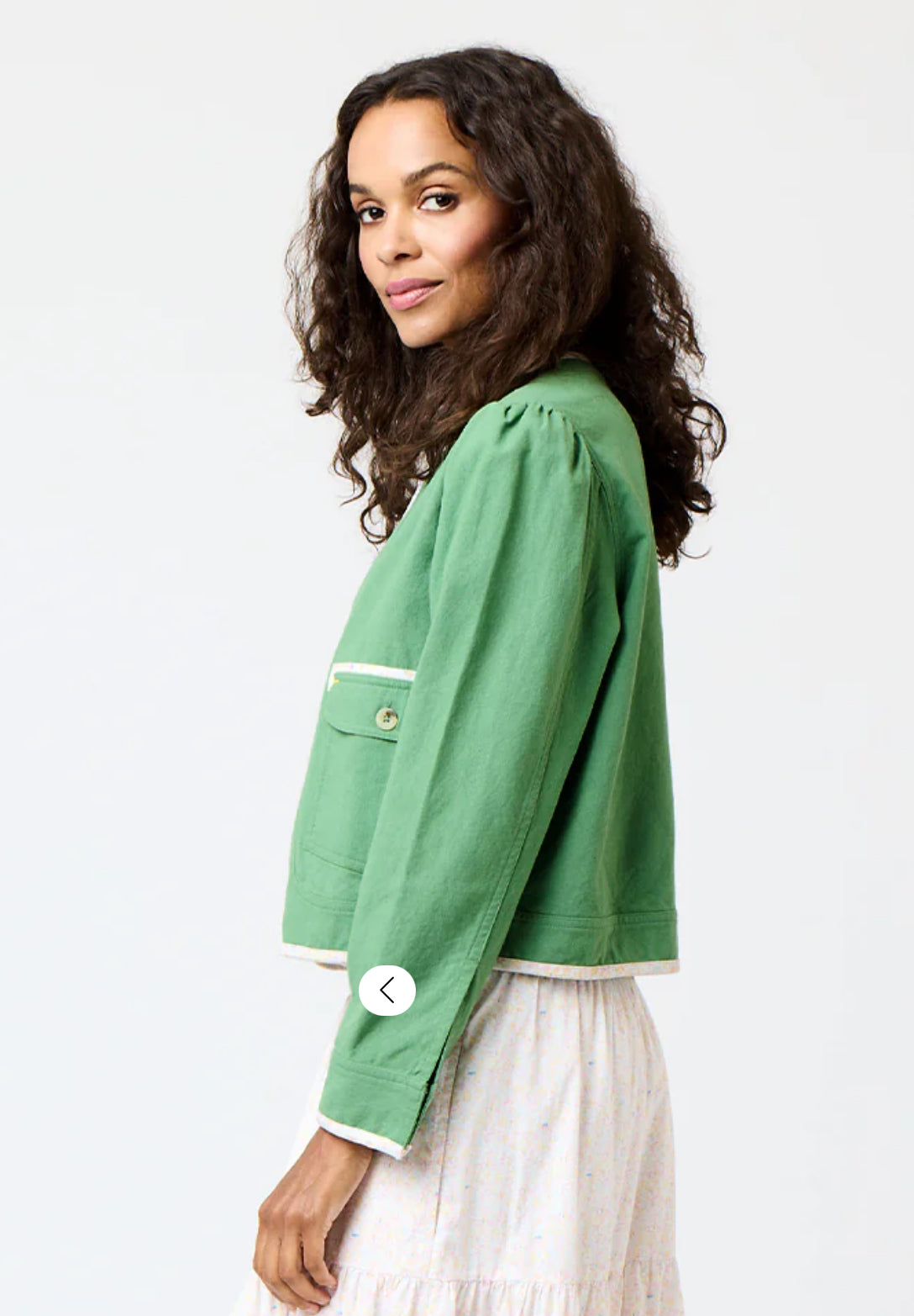 - Jacket is trimmed with our 'Sweetie Pie' print at the cuffs, hem, neckline, pocket and pocket interior