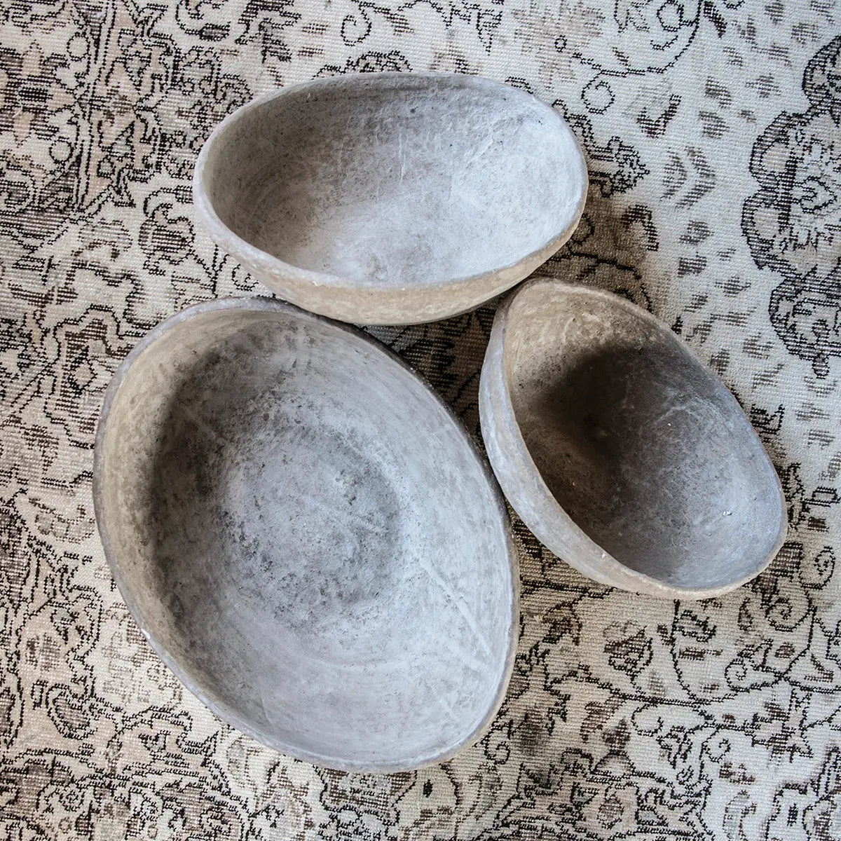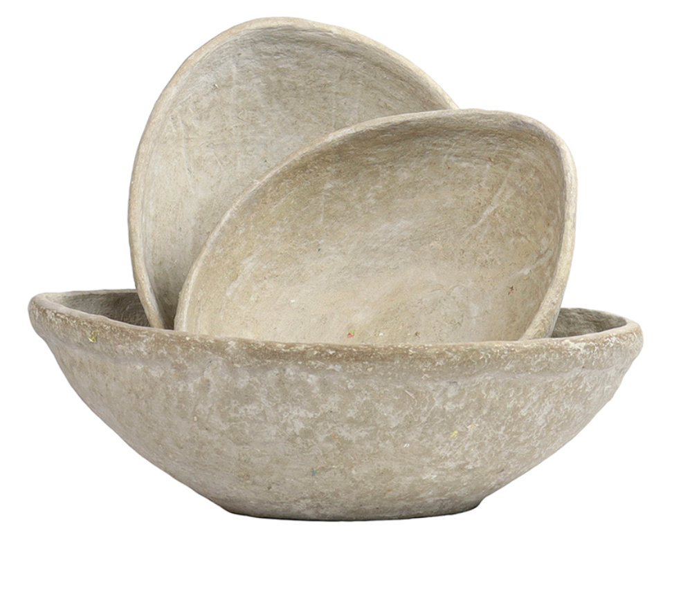 For decorative use, the Paper Mache Bowls, have an off-white color and egg-like shape. The bowls come in assorted sizes and condition. Fill the bowls with stylish ornamental balls or display on a shelf to tuck away light accessories.