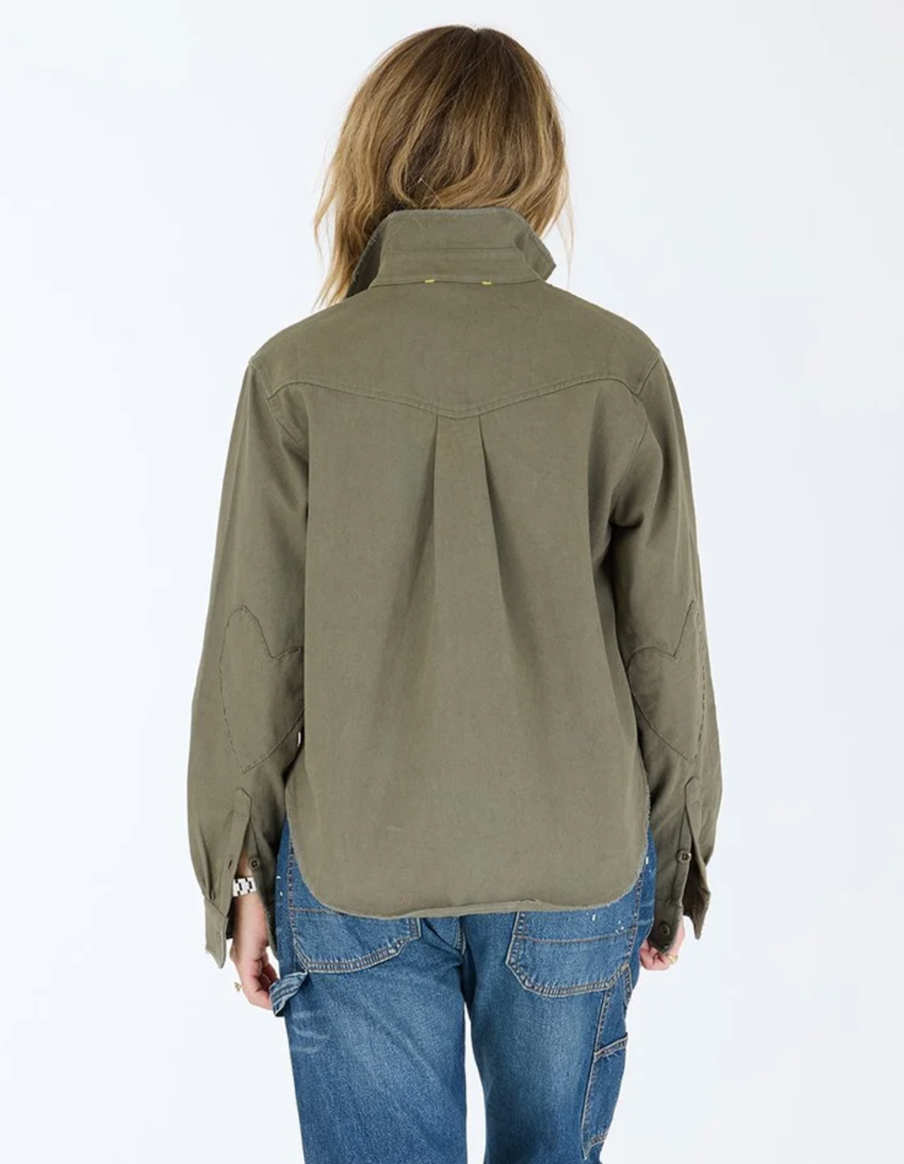 Report to duty in our Pia Love Brigade Shirt. Adorned with our Love Brigade ribbon as Kerri's art layer, this super soft twill shirt can be worn with your favorite denim, open or buttoned, for an effortlessly casual look.