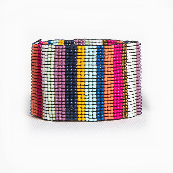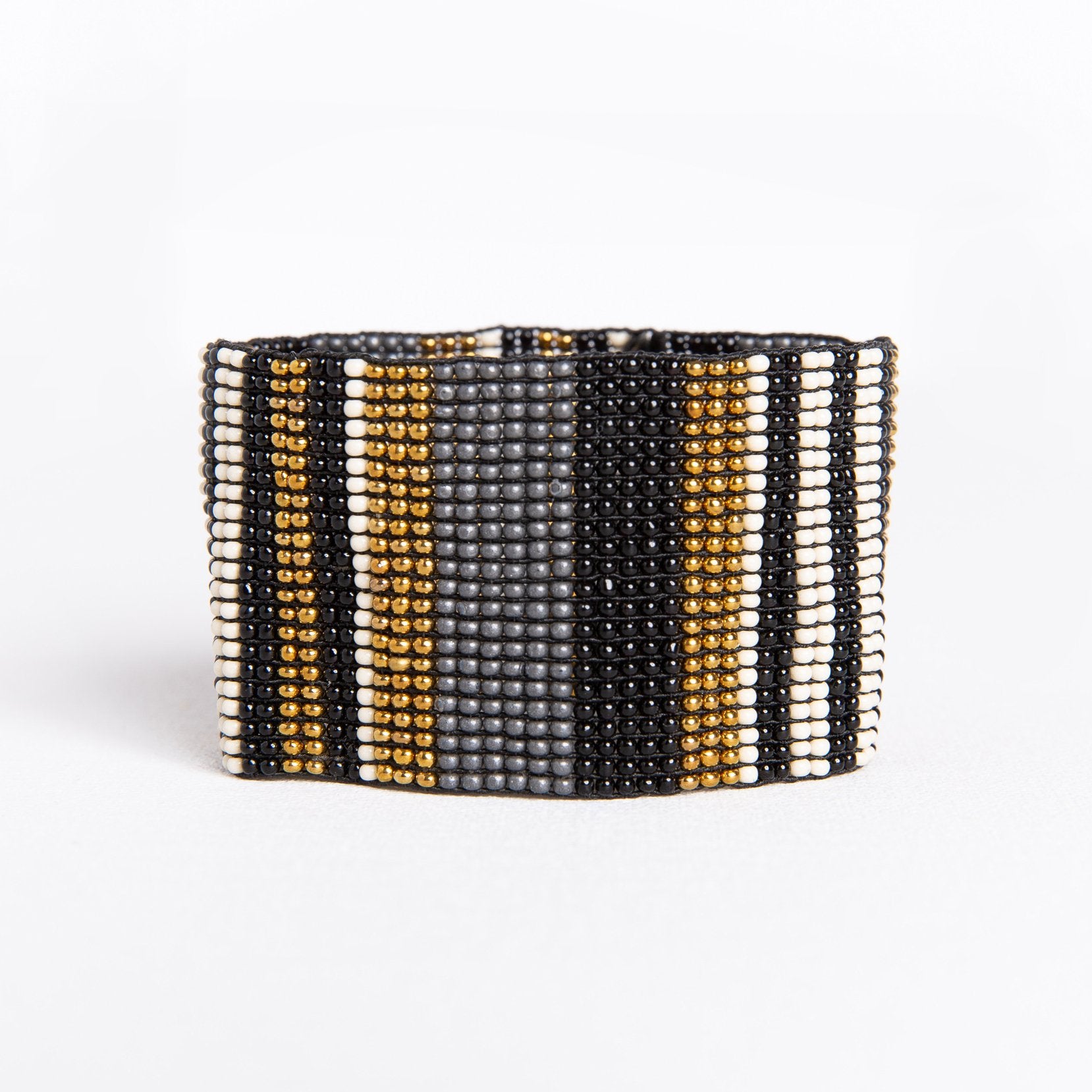 Part of our seed bead collection, this black, red, and ivory stretch bracelet is handcrafted by artisans in India. This patterned cuff adds an effortlessly cool pop of color to any modern boho outfit.