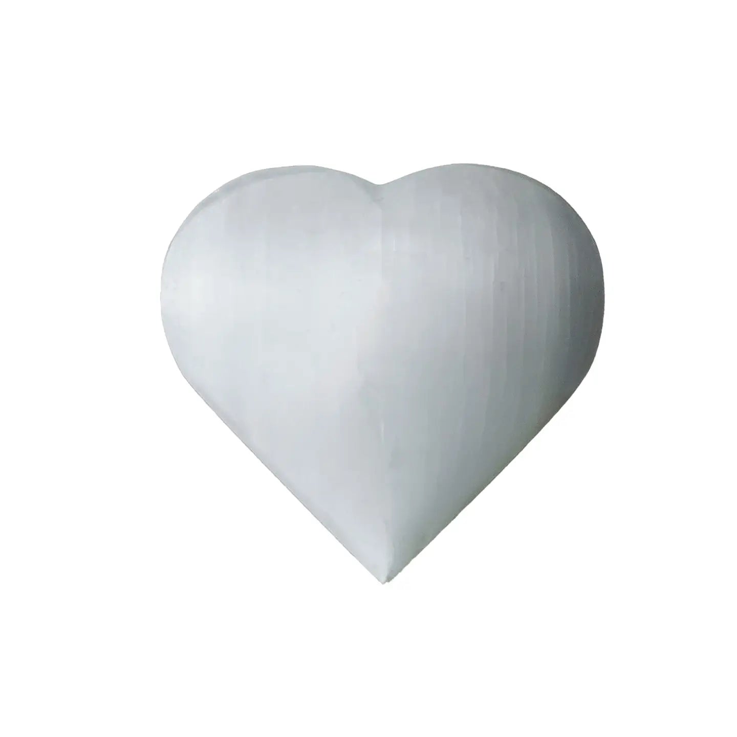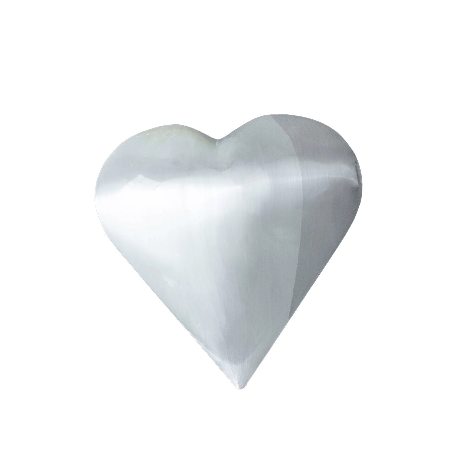 The Selenite Heart accents have an ice-like opaqueness that reflects light in a way that gives it the appearance of glowing. The highly polished and immaculately shaped Selenite Heart has a magnetic draw that emulates the richness and wonder of love.