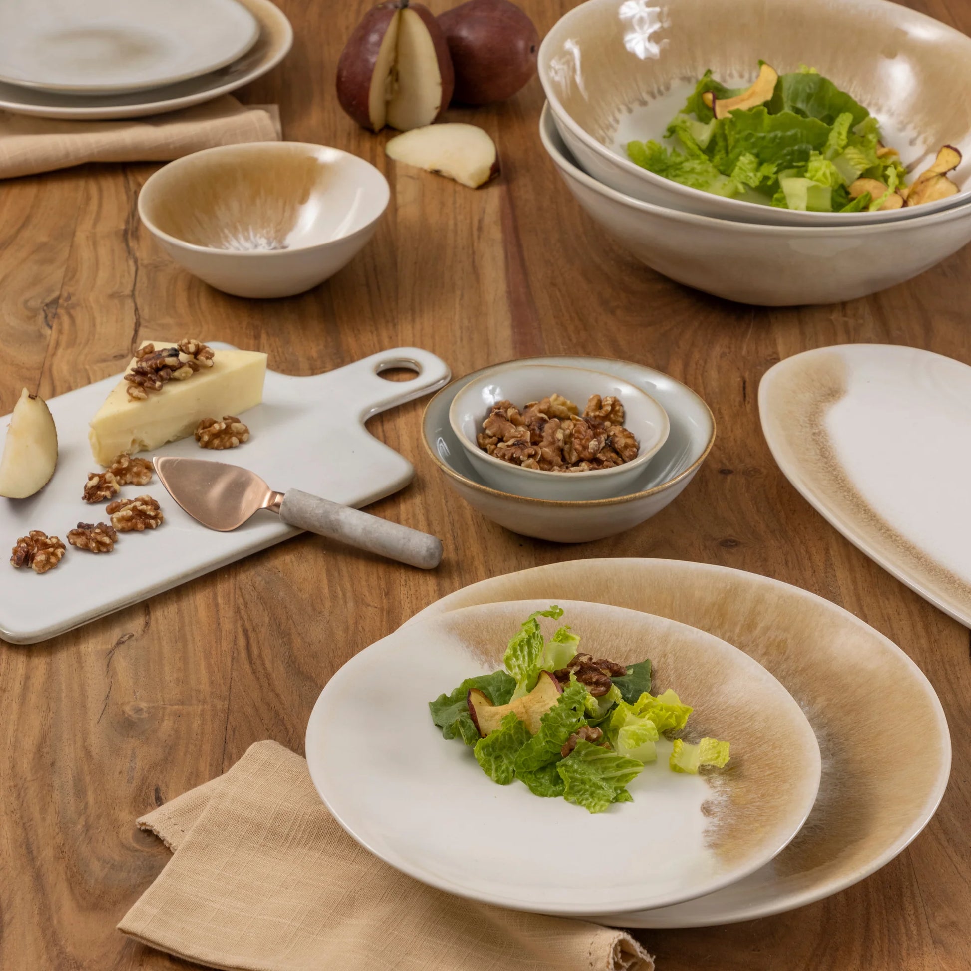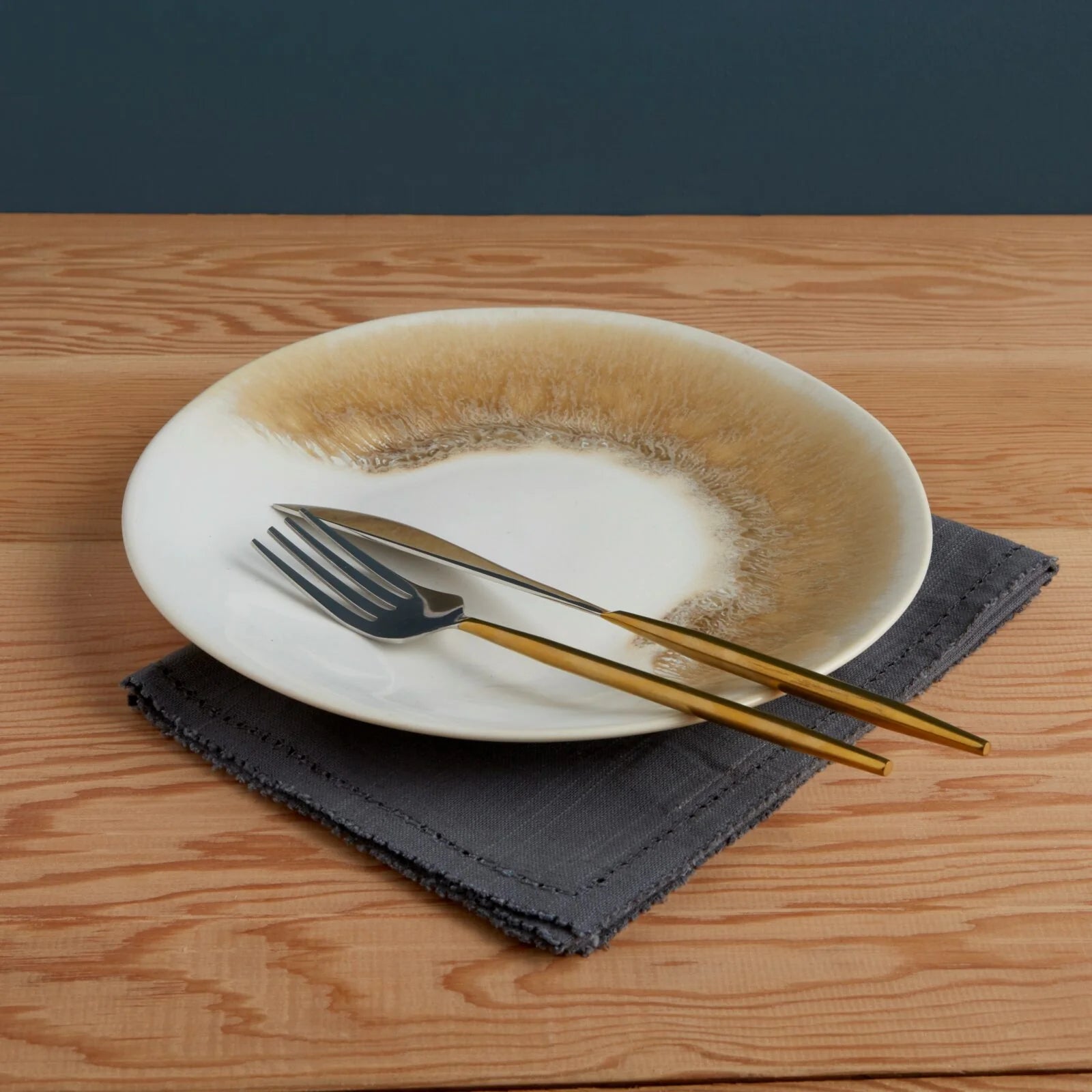 ur Sienna dinnerware challenges the status quo with a transformative reactive glaze which makes for a unique and ever-changing tablescape. Handmade in Portugal, Sienna boasts a lustrous finish with minimally-toned drips and ombre coloring that is reminiscent of a distant sunrise. The Sienna collection aims to reduce waste and lessen its ecological footprint by leveraging solar energy, and water recovery/reuse during the making process.