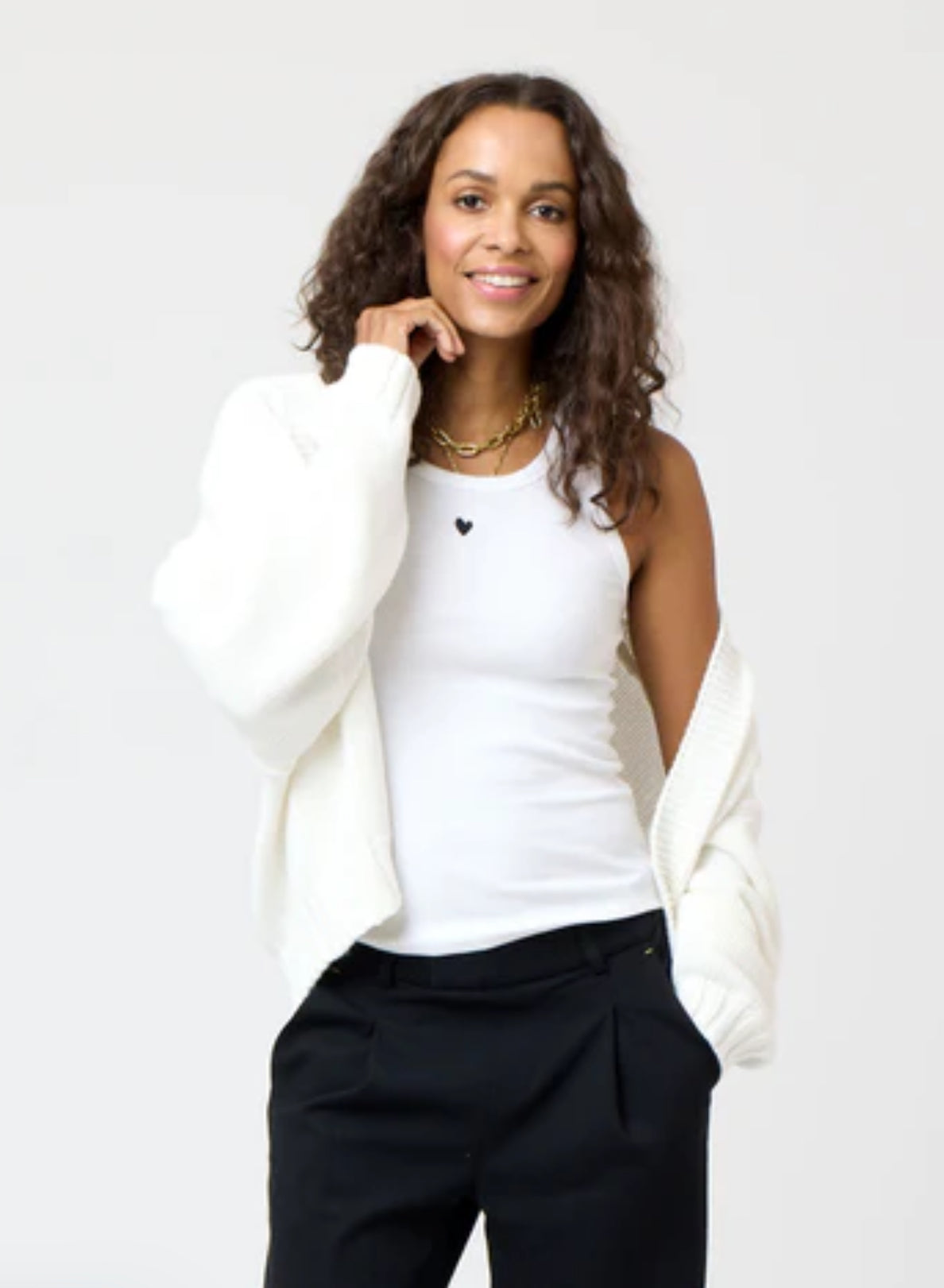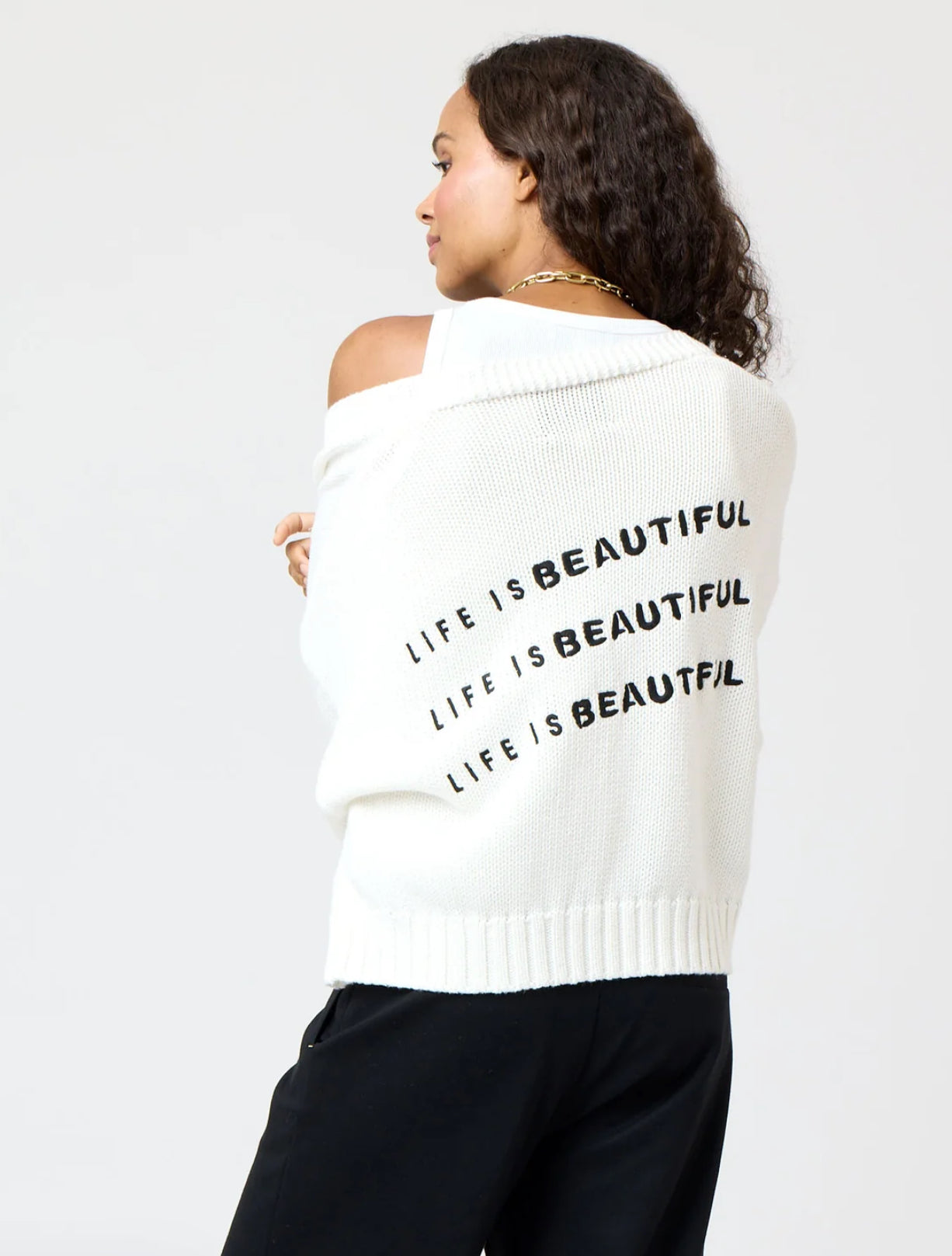 The Sienna is that perfect cardigan, made from airy-100% cotton knit, with Kerri's Life is Beautiful artwork on the back. This is an amazing layering sweater to be worn over shirts, tee's and especially our KR Tank.