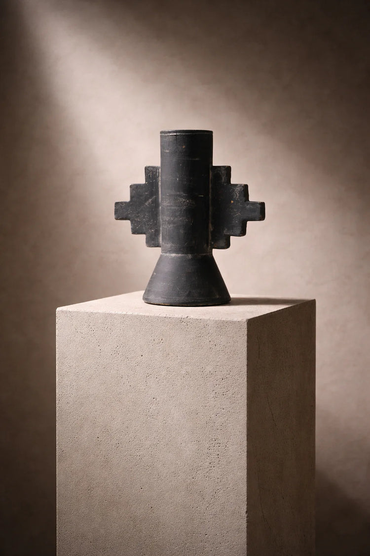 The Teo Vessel is handcrafted in terracotta with a charcoal finish.