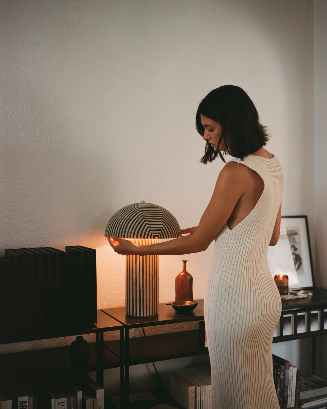 Terra Lamp Stripe + Black Shade