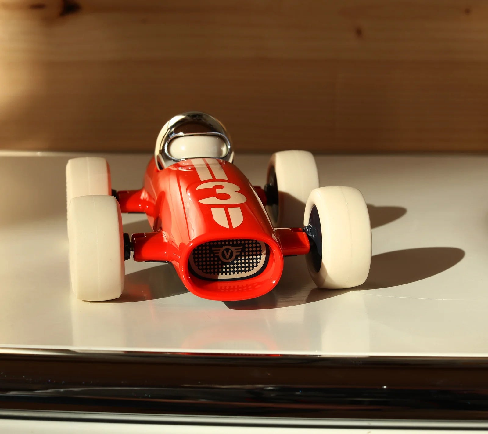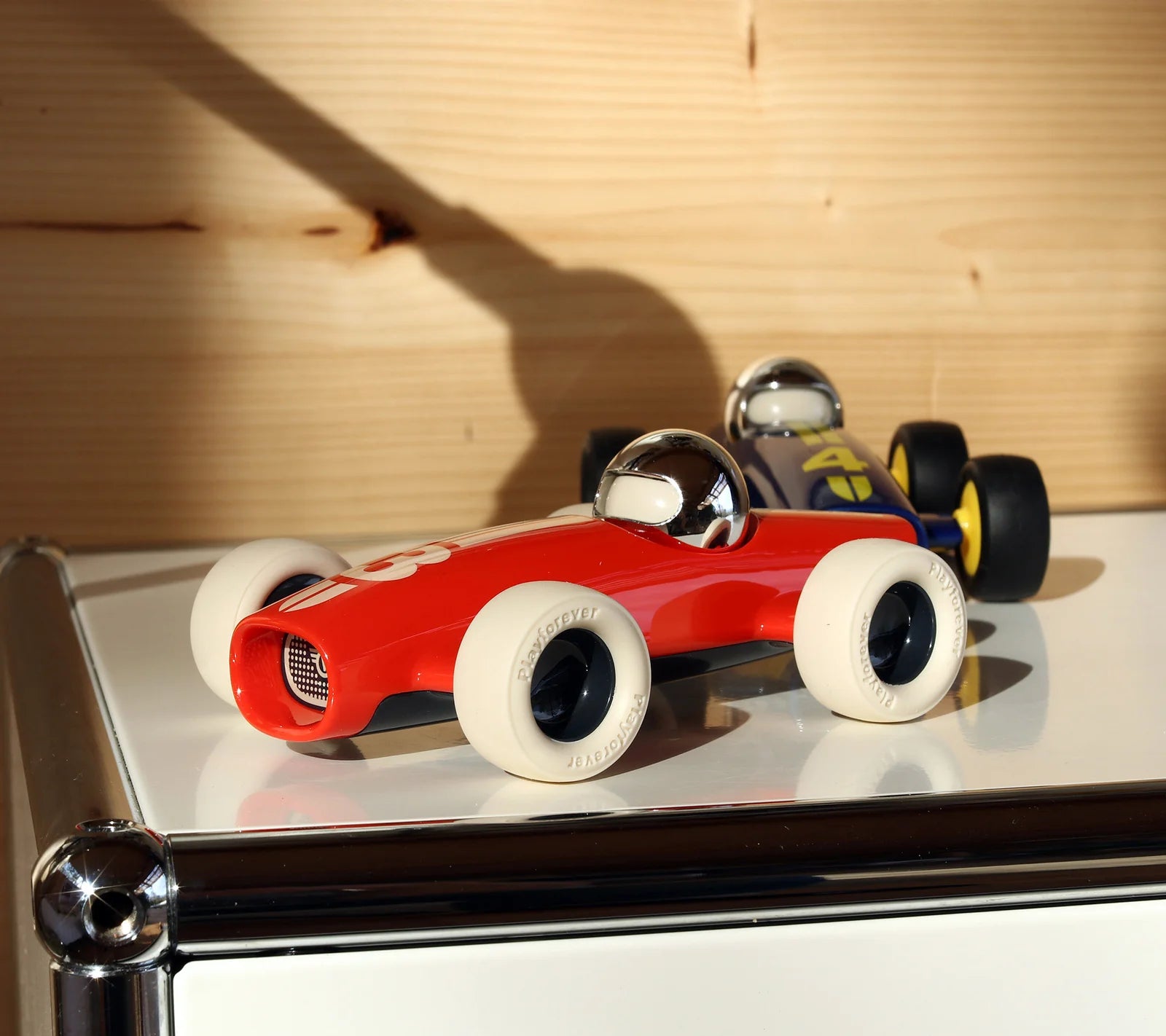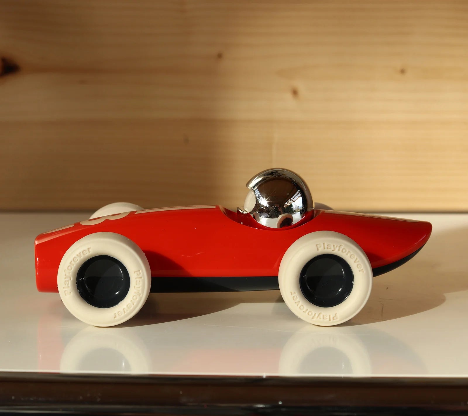 On your marks get set go! You can almost hear the roar of the engine as Malibu stands poised, ready for the race. Drawing inspiration from the early Maserati Formula 1 cars of the 20s and 30s but with a modern Playforever twist, our Malibu racing car is built for speed. With a pure and simple cigar tube chassis, long nose and wide open mouth, its shape is sleek and stream-lined whilst its wide profile, low-to-the-ground rubber tyres give it a bold confidence to rival all others at the starting grid.