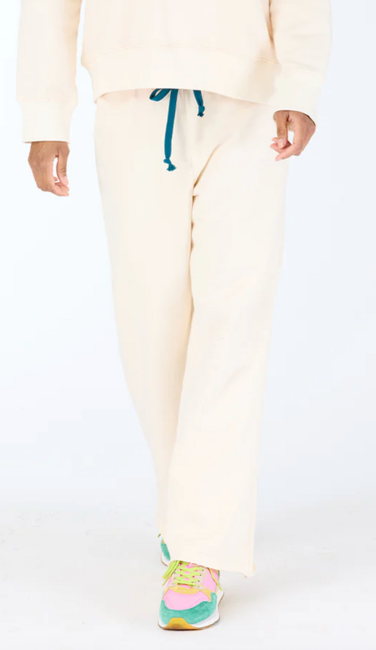 Kerri's Weekend Barb Sweatpant in canvas color way is crafted from soft cotton fleece, offering a relaxed fit and a longer length, a versatile essential for everyday wear.