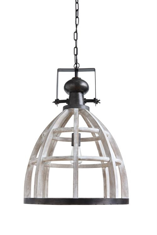18-3/4" Round x 28"H Wood & Metal Pendant Lamp