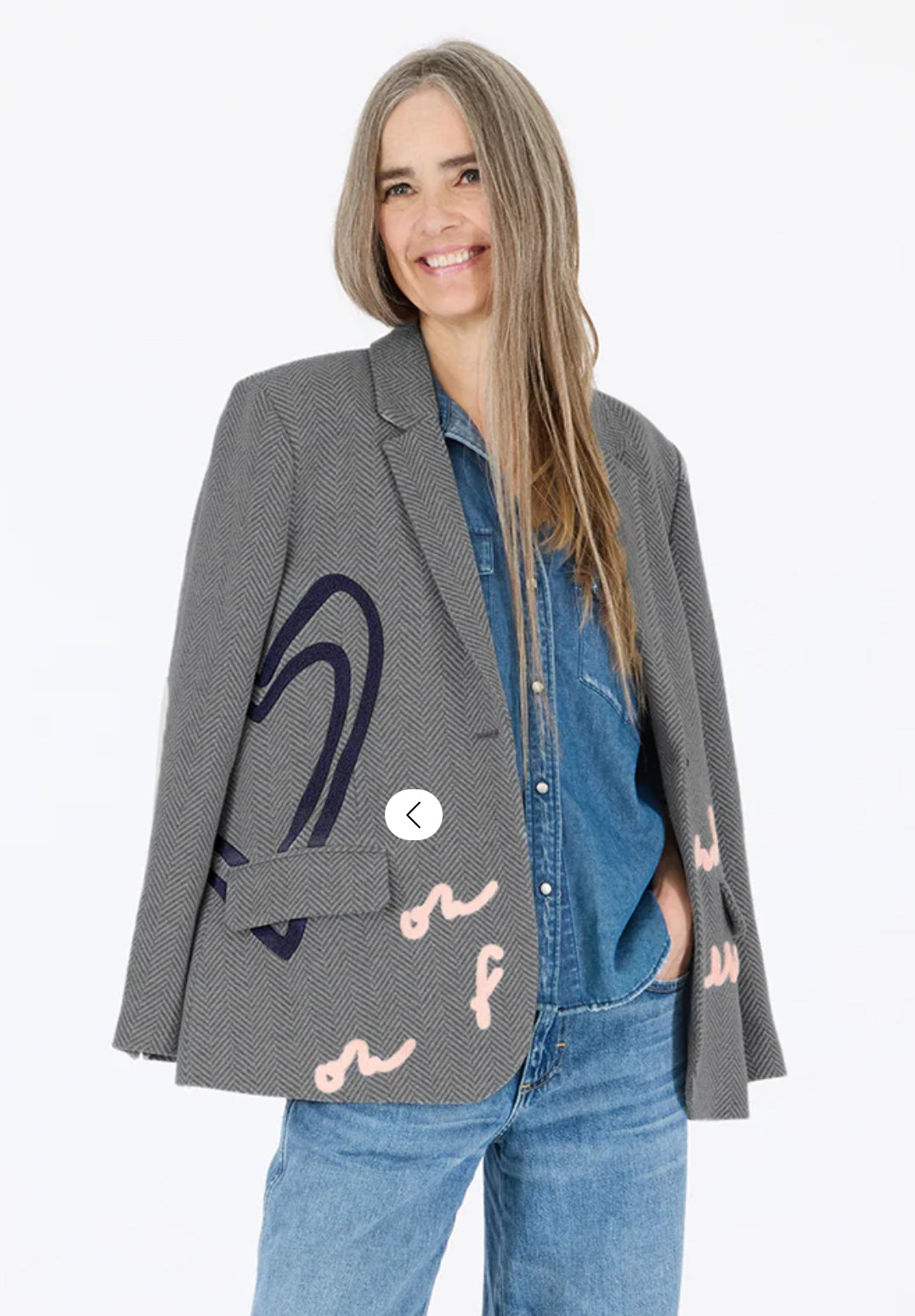 It's back! Style that goes on and on forever, The Workday On and On Forever Blazer has a slightly oversized fit and is layered with embroidered KR messaging and icons. This is a limited edition blazer, that works with everything and one you will reach for day to night.